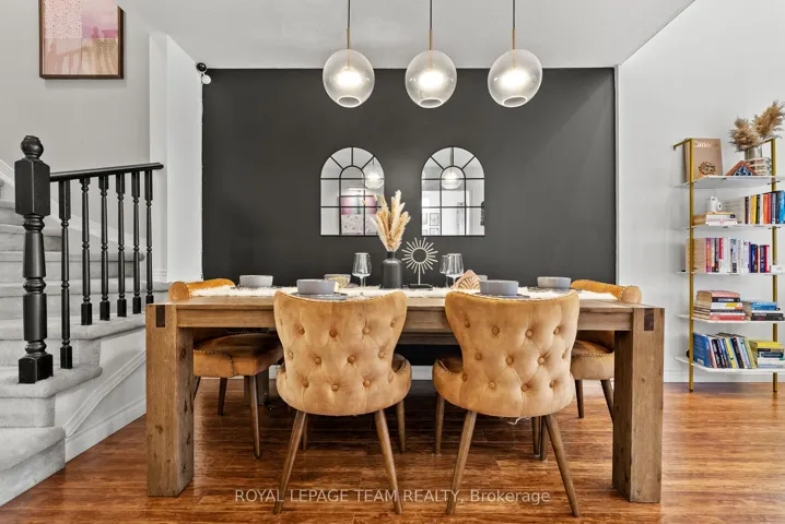 +"PublicRemarks": "Welcome to this beautifully maintained and tastefully updated freehold townhome in a highly sought-after, family-friendly neighbourhood. This charming Urbandale-built home features a unique layout with soaring ~15 ft vaulted ceilings in the living room, creating a bright and airy space that stands out from typical townhomes. The main level offers a spacious eat-in kitchen, perfect for everyday living and entertaining, along with a warm and inviting living area. Upstairs, you'll find three generously sized bedrooms and a well-appointed main bathroom. The finished basement provides valuable additional living space and includes a full bathroom-ideal for a recreation room, home office, or guest suite. Over the past few years, the home has been thoughtfully refreshed with numerous updates including modern lighting, pot lights, fresh paint, and updated bathroom finishes, making it truly move-in ready. Major updates such as roof (2016) and furnace & A/C (2016) provide added peace of mind. Enjoy the deep lot with a low-maintenance backyard, complete with updated fencing and a deck-perfect for relaxing or entertaining. Conveniently located close to parks, schools (English & French), shopping, and everyday amenities. A fantastic opportunity for first-time buyers, young families, or investors-book your private showing today!"