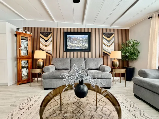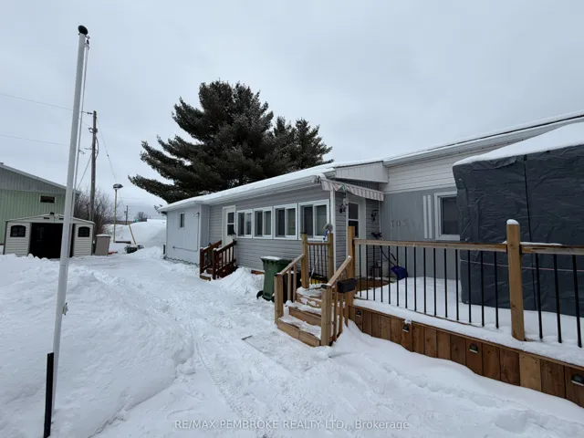 +"PublicRemarks": "Welcome to 103 Pinehurst Estates in Petawawa, an updated and move-in ready home offering exceptional value and a great location just minutes from key employment hubs including Garrison Petawawa (approximately 5 minutes) and Canadian Nuclear Laboratories at Chalk River (approximately 20 minutes). This well-maintained 2-bedroom home with an additional den or workshop features a spacious primary bedroom with double closets, a full bathroom with convenient in-unit laundry, and a bright, open-concept living space highlighted by modern vinyl floor tile( done in december 2025 ), updated finishes, and a stylish feature wall. The kitchen ( 2 years old) offers ample cabinetry, included appliances, and flows seamlessly into the dining and living areas, creating a functional layout ideal for both everyday living and entertaining. A practical mudroom adds extra storage and convenience, while the inviting front deck provides a great space to relax outdoors under the steel gazebo. Situated on a lot with a double driveway, the property also includes a storage shed, Rubbermaid garbage storage, and two additional storage containers offering plenty of room for tools and seasonal items. Perfect for first-time buyers or downsizers this home delivers outstanding affordability, comfort, and location. Quick Closing available"