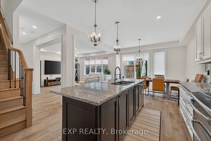 +"PublicRemarks": "Welcome to 55 West Oak Trail, located in the prestigious and family-friendly Huron Park community of Kitchener. Surrounded by scenic parks, trails, and close to everyday amenities-including Huron Natural Area, this home also offers easy access to Highway 401 and Highway 7 for a convenient commute. This stunning property features excellent curb appeal with a stone walkway, double garage with a professionally installed storage loft, and a cozy front porch with beautiful pond views. Inside, you'll find high ceilings, hardwood flooring, and stylish finishes throughout.The open-concept main floor includes a modern two-toned kitchen with white cabinetry, an oversized black island with seating, stainless steel appliances, and a bright dining and living area ideal for entertaining. Step outside to a fully fenced backyard oasis with low-maintenance turf(with warranty) and a premium VEKA solid-core PVC deck with built-in lighting. Upstairs offers four spacious bedrooms, including a primary suite with a walk-in closet and contemporary ensuite, along with a full bathroom and convenient laundry room. The fully finished basement adds valuable living space with a large rec room, modern full bathroom, and plenty of storage, with potential for a separate entrance. Facing the pond and within walking distance to schools and parks, this upgraded home is the perfect blend of comfort, style, and location."