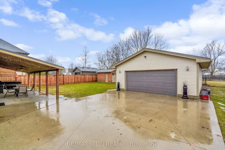 +"PublicRemarks": "Welcome to this beautifully updated bungalow in the heart of Lambeth-offering the perfect blend of modern finishes, functional space, and incredible outdoor features. The main level features a bright, open-concept layout with hardwood flooring, a stylish kitchen subway tile backsplash, and plenty of prep space. Two main floor bedrooms and a fully renovated bathroom complete the main floor. Downstairs, you'll find a spacious finished basement with a large rec room, additional bathroom, and flexible space for a home office, gym, or guest area. Step outside and you'll immediately see what sets this property apart-a massive concrete driveway with parking for up to 10 vehicles, plus a large detached 2-car heated garage. Ideal for car enthusiasts, hobbyists, or anyone needing extra storage and workspace. The backyard is fully usable and perfect for entertaining, featuring a covered patio area with hot and cold water and plenty of room to relax or host. Additional features include two additional sheds, great for your toys. Located in desirable Lambeth, close to schools, parks, and amenities, this is a great opportunity for buyers looking for space, updates, and versatility both inside and out."