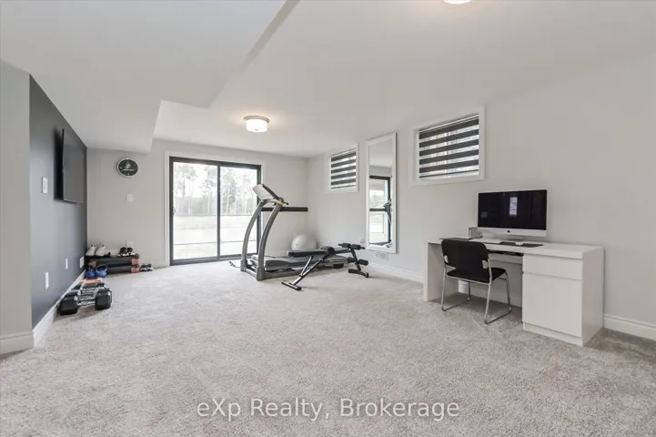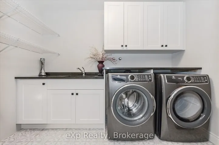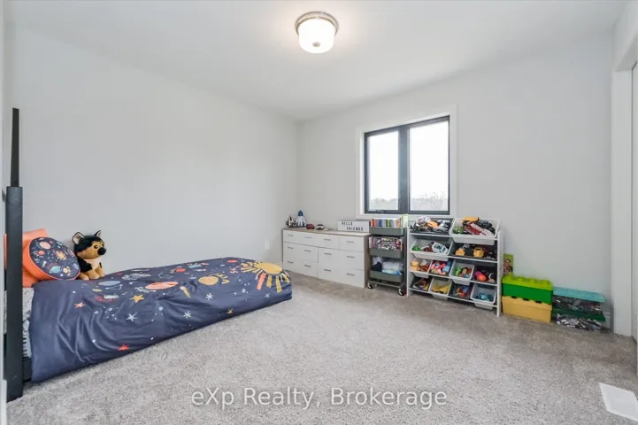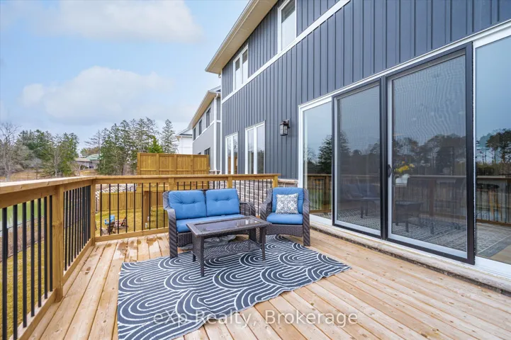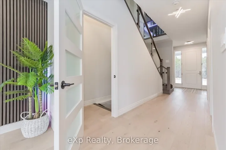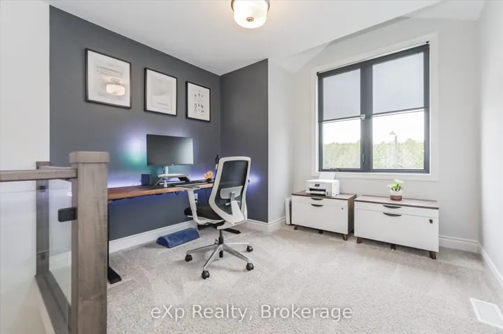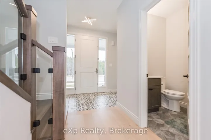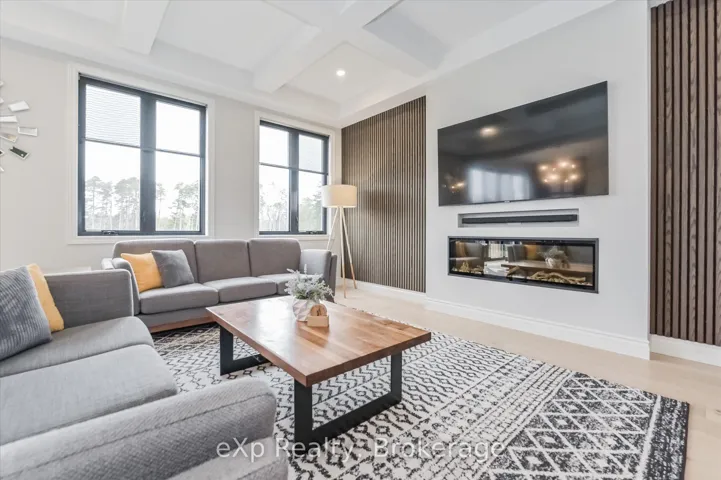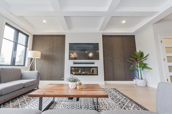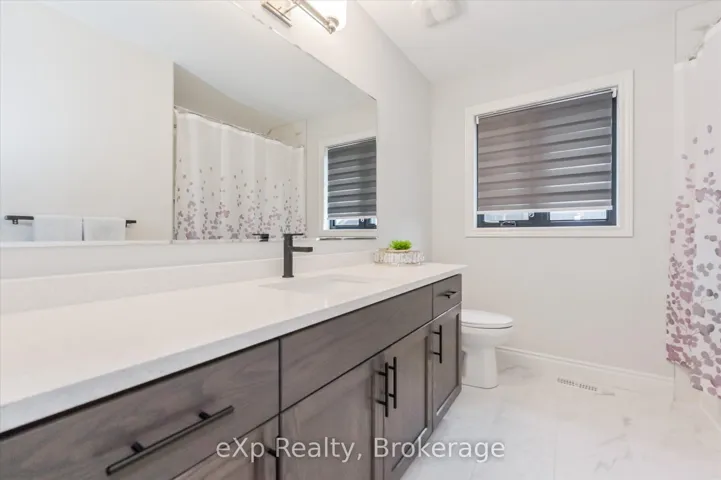 +"PublicRemarks": "Overlooking a tranquil pond in Elora's highly sought-after South River community, this 2023 Granite Home build offers a seamless blend of modern design and relaxed, nature-inspired living. With 4 bedrooms, 3 full bathrooms and a powder room, this home is thoughtfully laid out for both everyday comfort and stylish entertaining, just a short walk to downtown Elora and nearby trails including the Trestle Bridge Trail.Inside, every detail has been carefully considered. The kitchen stands out with a herringbone backsplash, two-tone cabinetry featuring cream uppers and light grey lowers and island, waterfall quartz countertops, sleek black hardware, a gas stove, and a custom coffee bar. The family room is warm and inviting, highlighted by a gas fireplace, walnut slat feature walls, and coffered ceilings that add depth and character. A striking glass staircase leads to the upper level, where a spa-like bathroom features a waterfall shower with niche and glass surround. White oak flooring and black window frames carry a clean, modern feel throughout.The finished walkout basement is bright and functional, offering additional living space with direct access to the backyard and peaceful water views. Complete with a double car garage and refined finishes throughout, this home presents a beautifully finished opportunity in one of Elora's most desirable neighbourhoods. Quick closing available."