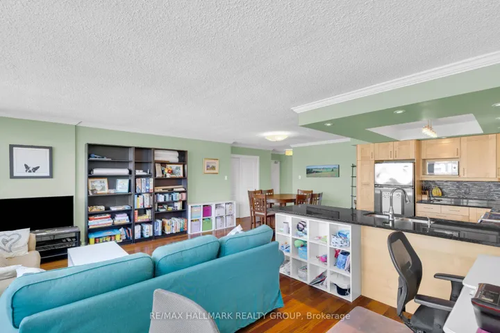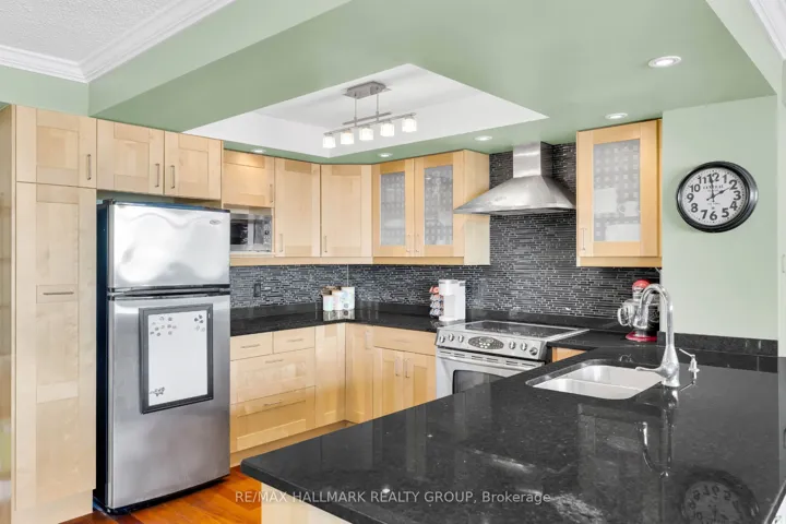 +"PublicRemarks": "Spacious 2-bedroom, 2-bathroom corner condo with underground parking in the heart of downtown Ottawa. This bright north-facing unit features large windows with beautiful city views toward the Ottawa River and Gatineau Hills, filling the open-concept living and dining area with natural light. The updated kitchen offers wood cabinetry, stainless steel appliances, dark countertops, and a U-shaped layout with breakfast bar that opens to the main living space, ideal for entertaining. The primary bedroom includes a walk-through closet with excellent storage leading to a private ensuite with standing shower, while the second bedroom is perfect for guests or a home office. A second full bathroom features a relaxing soaker tub. Additional highlights include ensuite laundry and generous storage throughout. Residents of 500 Laurier enjoy amenities including an indoor pool, fitness centre, guest suites, and shared lounge spaces. Located steps to Parliament Hill, the Rideau Canal, restaurants, shopping, transit, and the Lyon and Parliament LRT stations, this condo offers convenient downtown living in a well-established building with larger unit layouts."