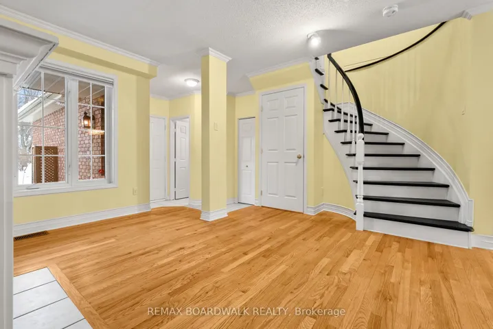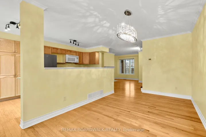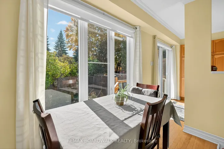 +"PublicRemarks": "Lovely townhome situated on a quiet crescent surrounded by young families. This well-maintained property backs onto the park and recreation area of the St. Laurent Complex with no rear neighbours and full southern exposure. Enjoy direct access to green space and community amenities including a pool, library, skating rink, gyms, and more. Pride of ownership shows throughout. The original owners made thoughtful modifications at construction, adding extra space to the dining and kitchen areas. Hardwood flooring runs throughout the main and upper levels. The main bathroom features a beautiful skylight, bringing in plenty of natural light. Step outside to a private, low-maintenance backyard with lovely landscaping and open views - the perfect spot to relax or entertain. The unfinished basement is framed and ready to be completed as a future family room. A bright, cheerful home in a great community close to parks, schools, and transit."