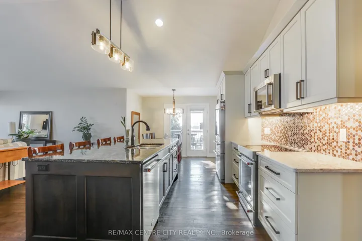 +"PublicRemarks": "Welcome to Unit 16-947 Adirondack Road situated in desirable Westmount Pines. This beautifully updated one floor end unit with walk out lower level and double car garage is sure to impress! A quiet enclave of 22 executive homes. It offers 3 bedrooms, 3 bathrooms with main floor den. This open concept main floor has hardwood flooring, vaulted ceiling in living room with gas fireplace and access to two outdoor decks and is perfect for entertaining. The kitchen has quartz countertops, lots of pot & pan drawers, pantry, coffee station with bar fridge, Kitchen Aid appliances and large island with 4 chairs and separate dining area. The master bedroom has a tray ceiling, a walk in closet & separate closet. The ensuite has quartz countertops with double sinks and walk in shower. The lower walk out level offers 2 large bedrooms with double closets, a 4 piece bathroom, large family room with gas fireplace and patio doors leading to patio and fenced in yard. Lots of storage in lower level. Its situated in a quiet, well maintained community and is close to Optimist Park, shopping plaza, restaurants and more. Just move in and enjoy!"
