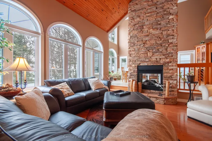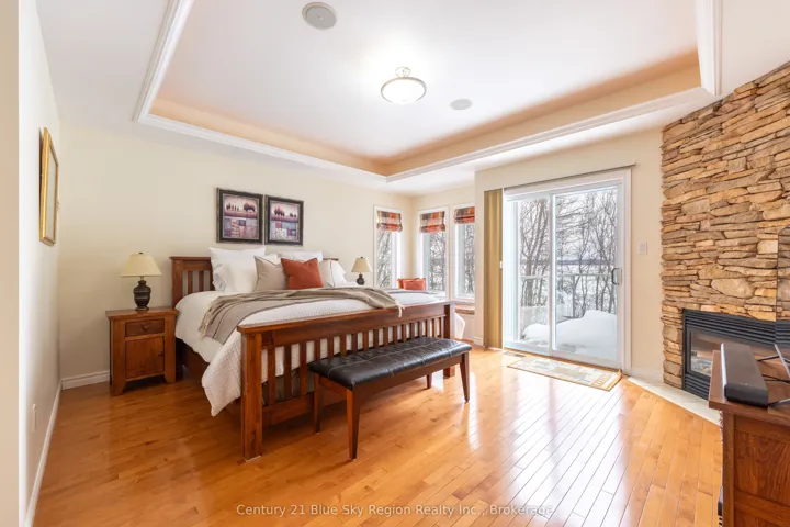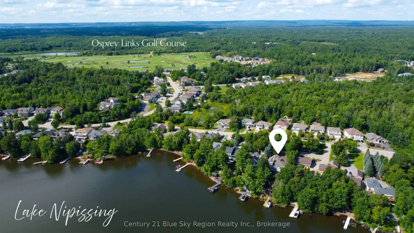 +"PublicRemarks": "Welcome to this stunning, custom-built south-facing home on an extra-deep waterfront lot on Callander Bay, Lake Nipissing, located in the desirable Osprey Links Subdivision with full municipal services. Nestled among majestic pines, this 3,900 sq. ft. home offers 4 bedrooms, 3.5 bathrooms, and both attached & detached double car garages. The main floor boasts a welcoming foyer, a sunken living room with vaulted pine ceiling, and a beautiful floor-to-ceiling limestone double-sided gas fireplace. The open-concept kitchen and dining area features maple cabinetry, granite counters, a large island with bar seating, and 21ft vaulted ceilings, with direct access to a large south-facing deck. The main floor primary suite overlooks the lake and includes its own fireplace, two walk-in closets, and a luxurious 5pc ensuite with a soaker tub. A 2pc powder room and a spacious mudroom/laundry area with garage access complete the main level. Upstairs, a large loft with custom maple staircase overlooks the living area ideal as a lounge, office, or kids' space. The walkout lower level includes a spacious rec room, exercise/flex area, 3 bedrooms (each with double closets), a 3pc bath (shared ensuite), and a 4pc Jack & Jill bath, plus storage and utility space. The naturally landscaped lot gently slopes to the water, with a lakeside gazebo, deck, and cantilever dock for easy seasonal use. Efficient forced air gas heating with AC, plus radiant heat in the lower level. From Callander Bay to the French River you have direct access to endless boating, sailing, fishing & snowmobiling from your front door. Close to the 18-hole Osprey Links Golf Course, beaches, trails, shopping, and only minutes from North Bay, 3.5 hours north of Toronto."
