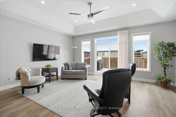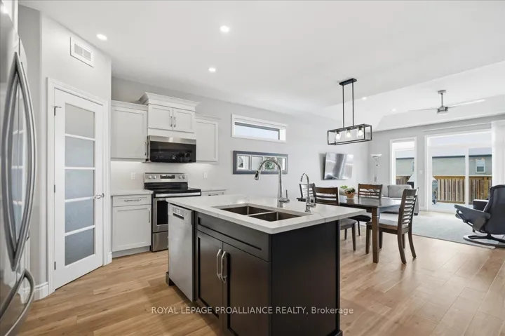 +"PublicRemarks": "Welcome to easy living in the sought after Settlers Ridge subdivision. This spacious 4 bedroom, 3 bath brick bungalow with double garage, built in 2020, offers modern design, quality finishes, and a fully finished layout ideal for down sizers, families or anyone seeking low maintenance living - with no construction zone hassle. The beautifully landscaped front entry, framed by lilac and sunburst locust trees, along with the covered porch, creates a warm welcome for guests and the perfect spot to relax with your favourite beverage. Inside, the bright open concept main floor features a spacious kitchen with island and pantry, a dining area that flows effortlessly into the living room with coffered ceiling, and patio doors leading to the back deck - perfect for both everyday living and entertaining. Two bedrooms are located on the main level, including a generous primary suite with walk-in closet and 3-piece en-suite featuring a tile and glass shower. The second bedroom which would also make a great home office has its own walk-in closet. A 4-piece bathroom, plus convenient inside entry from the insulated garage into the laundry room, add to the home's thoughtful and functional design. The builder finished basement extends the living space with two additional bedrooms, a 4-piece bathroom, a spacious rec room, and a large storage/utility/workshop room - ideal for teens, guests,hobbies, or a growing family. Outside, the irrigation system helps make maintenance a breeze, while the fully fenced backyard with gas line for the BBQ offers plenty of room to relax, garden, or let children and pets play. Move-in ready and impeccably maintained, with all appliances and BBQ included, this beautiful home delivers modern comfort in a fantastic neighbourhood close to parks, shopping, and all the amenities Belleville has to offer."