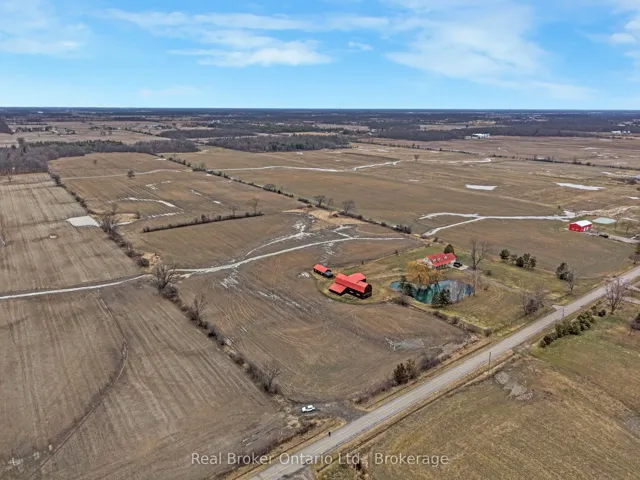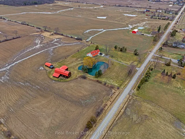 +"PublicRemarks": "Escape the hustle and bustle and discover this exceptional country property set on 50.585 acres of scenic land. Offering a wonderful blend of privacy, charm, and income potential, this property features approximately 10 acres of forest, with the remaining acreage consisting of productive farmland currently rented on a month-to-month basis. The inviting 2-storey farmhouse offers 4 bedrooms and 3 bathrooms, with a warm and functional layout ideal for family living. The main floor features bright principal rooms, a spacious living room with a cozy gas fireplace, and a beautiful enclosed sunroom perfect for enjoying views of the surrounding property. The updated kitchen offers stylish finishes, a centre island, and plenty of room for everyday living and entertaining. Upstairs, the bedrooms are bright and generously sized, while the finished lower level provides additional living space with a large living room, wood fireplace, cold room, and convenient access to the garage and laundry area. Outside, this property truly shines. A large stocked pond creates a stunning focal point and enhances the peaceful setting. The long driveway, gated entrance, expansive lawn, and open countryside views add to the property's impressive appeal. The large barn offers incredible versatility for storage, hobbies, agricultural use, or future possibilities. An additional outbuilding includes a bunky and a separate finished area currently used as a man cave, adding even more flexible space to enjoy. This is a rare opportunity to own a beautifully maintained rural property with endless potential in a picturesque setting."