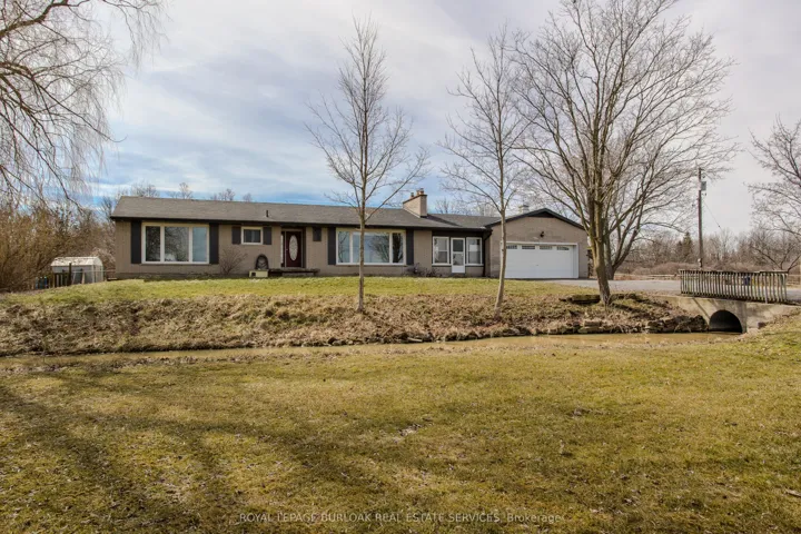 +"PublicRemarks": "Experience peak rural hobby farm living on this breathtaking property designed for those who value space, nature, and lifestyle. Set on a picturesque lot just under 12 acres with access to beautiful nature trails, this remodelled ranch-style bungalow offers the ideal balance of modern comfort and tranquility-ideal for horse or nature enthusiasts, all within a short drive to both downtown Binbrook and Hamilton. Arrive home to a newly expanded double-lane driveway with parking for 20 cars, framed by 8 blazing autumn maple trees. A creek flows through the front yard and connects to a peaceful pond, complete with upgraded LED lighting for magical winter evenings skating. Inside, the home has been thoughtfully updated with new engineered hardwood throughout the main level. The inviting living room features an oversized window with motorized blinds, fireplace, and custom built-in media wall. The luxurious kitchen showcases Cambria countertops, tile backsplash, custom cabinetry, new SS appliances, and a dining area accented by elegant wall paneling and walkout access to the backyard. The serene primary bedroom features wall-to-wall windows with stunning views, while 2 additional bedrooms and a 4pc bathroom with dual sink vanity complete the main floor. The finished lower level adds even more living space with new vinyl flooring, spacious rec room, and a family room featuring wood beams, stone feature wall, and fireplace. An additional bedroom and 3pc bathroom with oversized glass shower offer flexibility for guests or family. Outdoors, the property truly shines. Enjoy a 600sf Permacon paver patio, Douglas fir shade structures w/ UV sails, putting green, landscape lighting, perennial gardens, and expansive green space. Trails lead through a 2-acre forest, while the horse barn offers 6 stalls, hay mow, a 50-amp RV plug, and fenced paddocks & pastures ready for your horses. Don't miss this true rural gem."