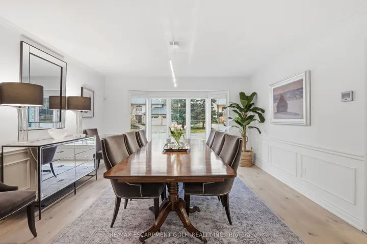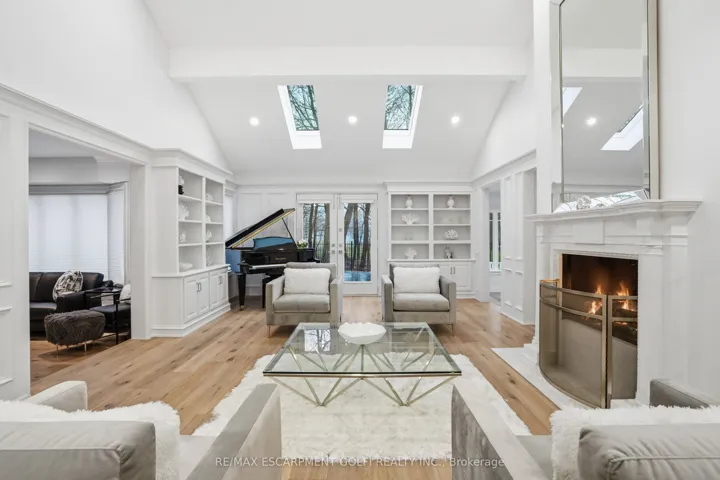 +"PublicRemarks": "Situated on a serene, tree-lined street, this remarkable five-bedroom home offers breathtaking views and exceptional privacy, backing directly onto the prestigious Hamilton Golf and Country Club. Surrounded by mature landscaping, the property blends timeless elegance with modern comfort. The main level features expansive principal rooms, including a dramatic family room with vaulted ceilings, skylights, custom millwork, and a striking fireplace. A gourmet kitchen with premium finishes flows seamlessly into a sun-filled solarium overlooking the professionally landscaped backyard, complete with a pool and outdoor entertaining spaces. Upstairs, the primary suite serves as a private retreat with a fireplace, walk-in closet, and spa-inspired six-piece ensuite. Additional bedrooms are generously sized, ideal for family and guests. The fully finished walk-out basement offers versatile space for recreation, entertaining, or multi-generational living, including additional living areas and a private retreat. Additional features include 200 amp electrical service and an EV charging plug in the garage, combining modern convenience with refined living. This exceptional home presents a rare opportunity to enjoy elegant design, comfort, and lifestyle in a coveted golf course setting. Luxury Certified."