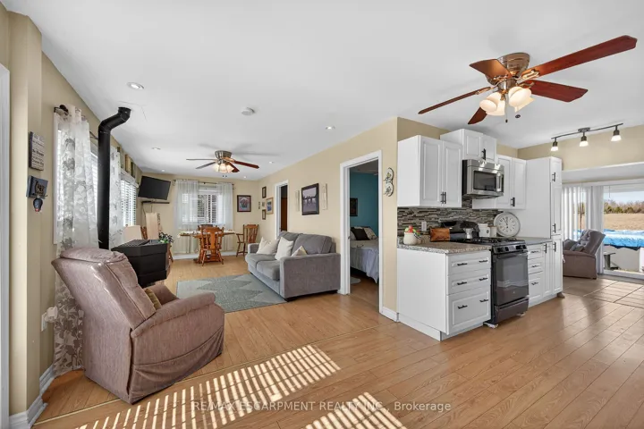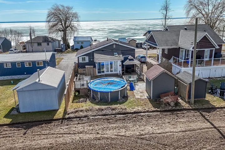 +"PublicRemarks": "Your Lake Escape Awaits!! With Spring nearing it's time to take advantage of Lake Erie - a magnificent Great Lake offering aquatic adventures galore. Imagine not worrying about the horrendous 4 hour drive to Ontario's North - when less than an hour commute from Hamilton, Burlington, Brantford, Niagara, QEW & 403 - you can be sitting on your very own newly constructed (2024) 280sf lake facing entertainment deck accented w/stylish glass railings - providing the ultimate venue to relax & enjoy incredible, panoramic water vistas across scenic Lakeshore Road. After a day of sunshine - retreat inside & embrace 819sf of nautical beauty this tastefully presented 3 bedroom cottage exudes. Situated on landscaped 50ft x 100ft lot overlooking endless acres of farm fields is totally renovated lake house (studs out-2009), w/current owner careful to maintain it's sea-side ambience, as evidenced by the nautical inspired décor. Showcasing brilliant white kitchen sporting ample cabinetry, chic tile back-splash, SS fridge & n/gas cook stove - continues to open concept dining/living room savoring the n/g fireplace's warmth while basking in the abundance of natural light cascading thru multiple water facing windows & 2 gardens doors. Flanking 3 sizeable bedrooms is beautifully updated 3pc bath-2024 - leads to rear family room ftrs vaulted ceilings, easy-wear tile flooring, floor to ceiling windows & patio door walk-out accessing 540sf rear deck system & resort style yard centered around refreshing 18ft round swimming pool. Atlantic blue exterior siding-2023 complimented w/stylish stone-like skirting sets this "Erie Gem" apart from it's peers. Minimal cost, easy to insulate plumbing/water system ensuring affordable, future year-round lake living. Extras - metal roof-2023, vinyl windows, concrete pier foundation, laminate flooring, 2000g cistern, septic system, 100 amp hydro, metal gazebo, owned water heater & majority of furnishings. Can't you just feel the warm lake breezes BECKONING!"