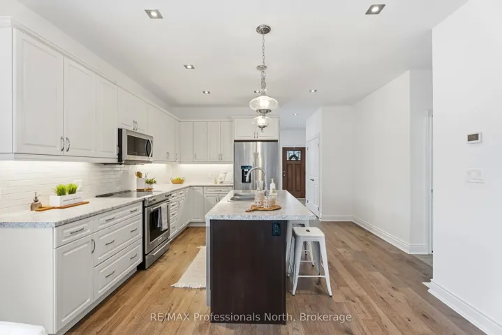 +"PublicRemarks": "Welcome to 204 Rosanne Circle in the sought-after River's Edge community. This beautifully upgraded Twain model offers a thoughtful blend of modern design, quality finishes, and smart functionality throughout. The kitchen features quartz countertops, upgraded champagne bronze hardware, and a newly completed backsplash (2026), anchored by a premium $20,000 appliance package including a GE Café induction stove (2024). Smart home features include a touch/voice-activated IQ faucet and Nest system for added convenience. Interior upgrades include custom closets in the primary bedroom and foyer (2024), custom laundry room cabinetry with backsplash (2025), new washer and dryer (2024), upgraded lighting throughout, hardwood flooring, oversized foyer tile, and sleek black rectangular door hardware. One of the secondary bedrooms features a cathedral ceiling, adding character and a sense of space. The fully fenced backyard (2025) has been enhanced with a 400 sq. ft. deck completed in 2025 complete with built-in planters, creating an ideal outdoor space for entertaining. Additional exterior improvements include an upgraded walkway from the garage to the backyard and enhanced hose hookups. The home offers an oversized driveway with parking for three vehicles, an oversized 1.5-car garage with automatic opener, and an unfinished basement with a highly functional layout and excellent potential for future living space. A move-in ready home in a desirable community, offering both comfort and opportunity."