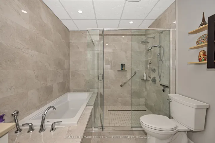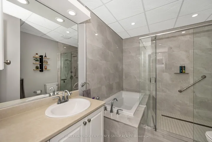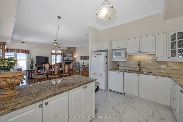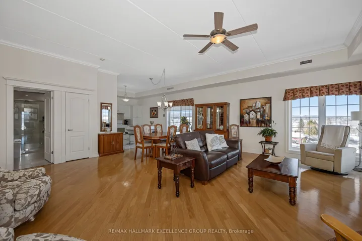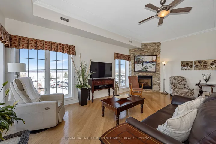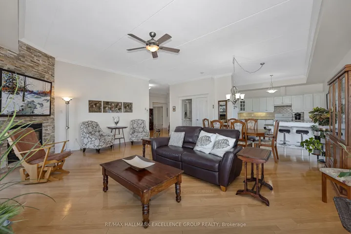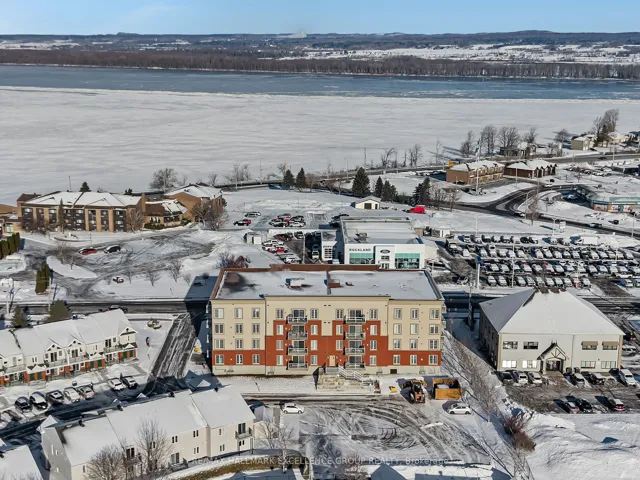 +"PublicRemarks": "Welcome to penthouse living in the heart of Rockland. Perched on the top floor, on a corner this beautiful condo offers breathtaking views of the Ottawa River and unforgettable sunsets that will quickly become your favourite part of the day. From the moment you step inside, you're welcomed by a spacious and elongated foyer that creates a warm and elegant first impression. This 2-bedroom condo offers open-concept living with impressive 9- and 10-foot ceilings, along with hardwood and ceramic flooring throughout. The spacious living room, dining area, and kitchen are perfectly designed for both everyday living and entertaining, with room for a long dining table and a movable kitchen island for added versatility. The primary bedroom is generously sized and features a walk-in closet, while the second bedroom is also a great size for guests, family, or a home office. The main bathroom has been beautifully updated with a luxurious glass and tiled walk-in shower, a relaxing soaker tub, and new ceramic flooring, creating a true spa-like retreat. A convenient 2-piece bathroom, in-unit laundry room, and separate in-unit storage room add to the functionality of this exceptional unit. This unit also includes 1 indoor parking space and 1 outdoor parking space, along with access to the building's party room. Ideally located within walking distance to Rockland's amenities, including banks, clinics, stores, and restaurants, this condo offers both comfort and convenience in a sought-after location. 24 Hours Irrevocable on all offers."