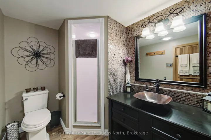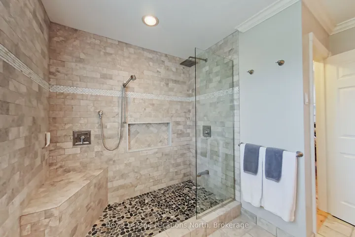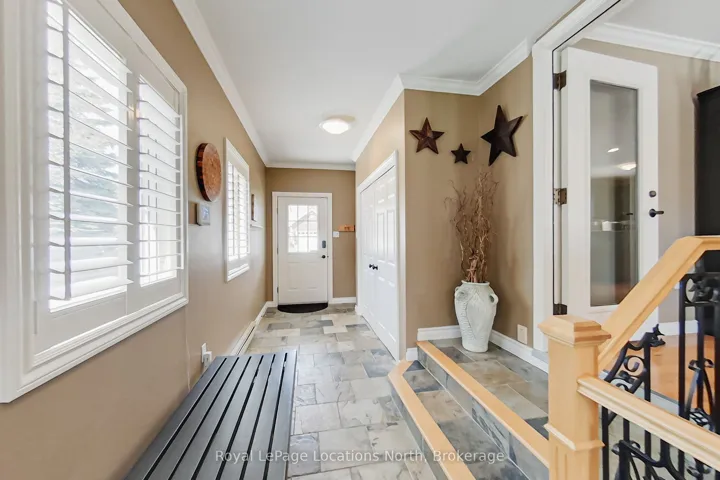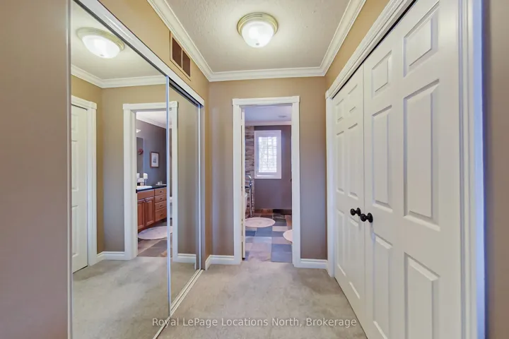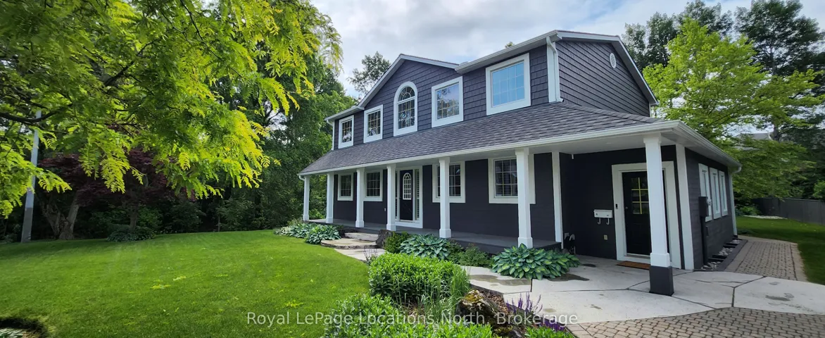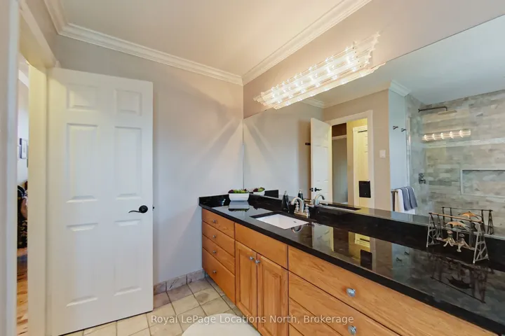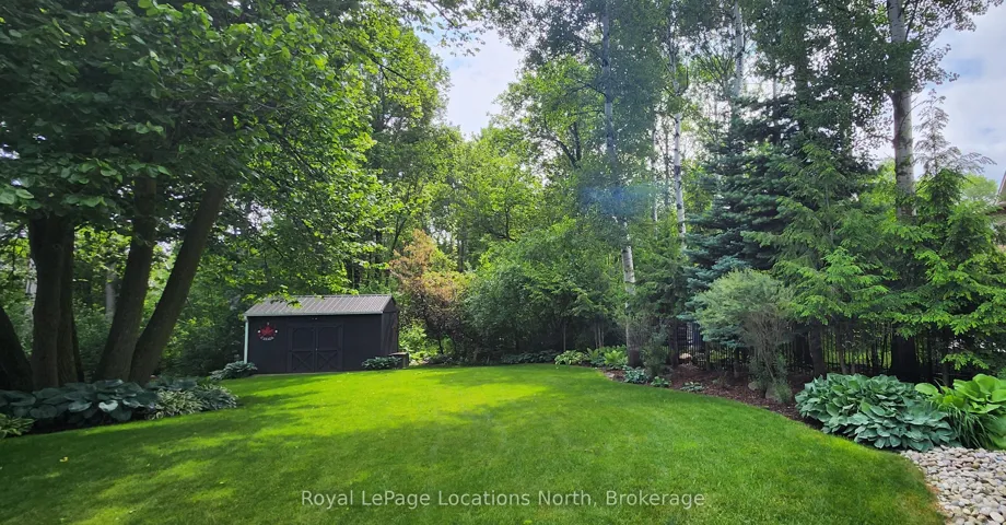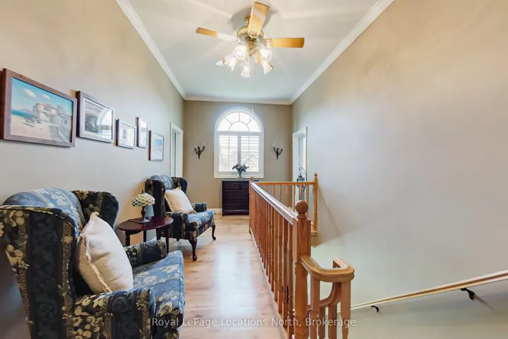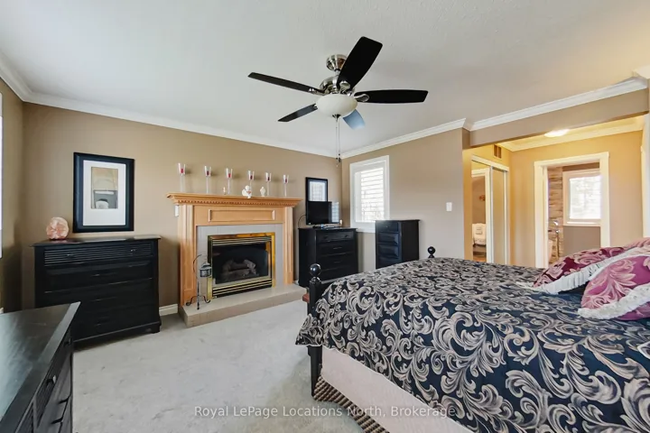 +"PublicRemarks": "Beautiful CUSTOM BUILT home/chalet, on a cul-de-sac, steps to Blue Mountain Village & Skiing! Privacy w 3 acre protected greenspace, never have a house on your east side! 4 bedroom, 4 full bath, 3332 sqft of finished living space. A primary bedroom suite upstairs + a large main floor bedroom. Guests use main door on the covered front porch, you can enter into the side breezeway w slate tiles & large windows for lots of light, a 2nd back entrance & 2nd stairway to the lower level. Chef's dream kitchen w attractive granite counters ,lots of cupboards & counter space, SS appliances & breakfast bar. Open concept w large dining area to fit all your dining cabinets & overlooks the gorgeous backyard w walkout to the back dining patio.2nd walkout to hot tub deck w greenspace privacy, built-in gas firepit, backyard oasis w beautiful large trees. Main floor bathroom has a convenient shower for use after your hot tub & granite counters. Large living room w gas fireplace, all front rooms (main & 2nd floor) have custom shutters, w blinds on other windows. Upgraded Awning Windows (hinged at the top, creating an awning effect provides excellent ventilation & rain protection). Primary bedroom suite w green space views, 2nd cozy gas fireplace, his & hers closets, mirrored dressing area & ensuite w granite counters, heated floors & soaker tub in an attractive stacked-stone enclave. 2 more large bedrooms on this floor & main bath w gorgeous walk-in shower & granite counters. Main basement staircase has a door to provide quiet between levels, huge family room currently set up as a home office w ceramic "wood-plank look" floors, an extensive built-in wall unit,4th full bathroom w sauna, a laundry room,utility/storage room w built-in ski-tuning bench, on-demand (owned) water heater, another storage room. Enjoy the backyard oasis created by renowned Landmark Group, large drive-shed & side parking for10 cars.Note jumbo flagstones front & back! Visit REALTOR website for further information."
