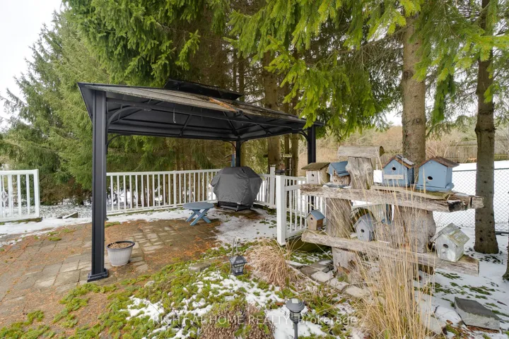 +"PublicRemarks": "Exceptional meticulously maintained Multi-Family Country Home in a charming board and batten exterior with a matching large detached Workshop/Garage on Scenic Acreage - Minutes to Highways 407, 401 & 115 and the Ganaraska Conservation. Welcome to your dream retreat! Nestled on a quiet country road and surrounded by rolling hills, picturesque horse farms and the Ganaraska Forest at your doorstep, this property offers a rare blend of privacy, natural beauty, and convenient access to major highways and amenities. Enjoy a true four-season lifestyle-hike, bike, ride, or snowmobile right from your doorstep and immerse yourself in the surrounding outdoor paradise. This spacious bungalow offers over 4000+ sq ft of living space with 5 total bedrooms across both levels is thoughtfully designed for both comfort and connection to nature, featuring three decks/balconies on the main level and a fully finished lower level with three walkouts, providing seamless indoor-outdoor living and stunning views of the private landscape. Inside, the home boasts bright, expansive principal rooms, vaulted ceilings, gorgeous pine wood plank floors, three full bathrooms, and a chef's kitchen complete with granite countertops and ample cabinetry. A full second kitchen offers excellent flexibility, allowing the home to function as two separate living spaces-ideal for multi-generational living or income potential. Step outside to your heated, in-ground saltwater pool, surrounded by beautiful perennial gardens-perfect for relaxing or entertaining. Additional features include a 26' x 36' insulated garage/workshop with heater, a tool shed, a large storage tent for all your recreational equipment, and a charming gazebo to enjoy the peaceful surroundings."