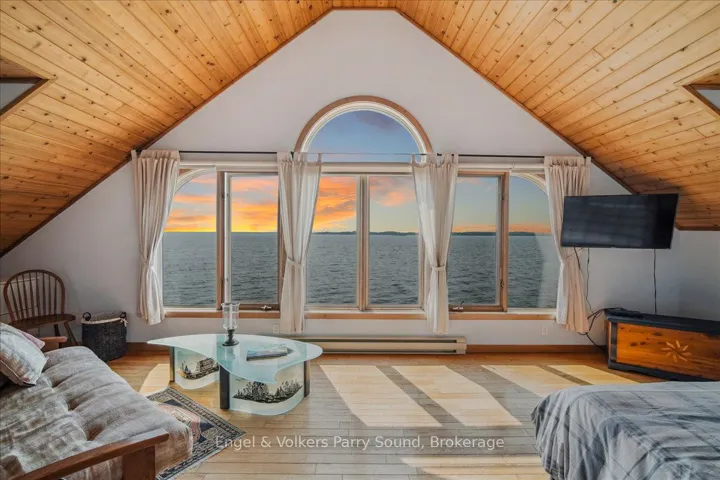 +"PublicRemarks": "Welcome to Three Tree Island - An iconic & idyllic island retreat, Three Tree Island offers the rare opportunity to own a piece of Georgian Bays storied landscape. Featured in Cottage Life magazine, this majestic property combines timeless natural beauty with refined craftsmanship & total seclusion, an unmatched private oasis in the heart of Ontario's cottage country. Built by renowned local craftsman Ron Bowman, the islands main residence blends rustic charm with modern comfort, offering 3 bedrooms, 2 bathrooms & panoramic water views from every room. The primary suite is a true sanctuary, where oversized windows create the illusion of floating on the Bay itself. A separate bunkie with an additional bathroom provides extra accommodation for guests, along with an outdoor shower, sauna & hot tub that complete the spa-like experience. Strategically located just 3 minutes from municipal docks & 5 minutes from Parry Sound Harbour, access to town is effortless yet the island feels worlds away. Enjoy an afternoon at the nearby Parry Sound Golf Club, then return to wave at the Island Queen, passing cruise ships & Coast Guard vessels gliding by in the surrounding waters. Soak in dramatic western-facing views down the length of Georgian Bay and bask in unforgettable sunsets from the expansive decks, perfect for entertaining friends and family. With no neighbours in sight, extreme privacy & a granite shoreline hugging the island's perimeter, this is the perfect place to enjoy the sun, stars & Northern Lights.The property is offered fully furnished & features a commercial-grade steel docking system on the leeward side of the island, capable of accommodating larger vessels. Stay connected with full electricity & reliable internet, making it ideal for remote work or year-round escape. Whether you're swimming off the rocks, unwinding in the sauna or gazing at the endless water views, Three Tree Island is an exceptional, once-in-a-lifetime offering. Sunset lovers take note."