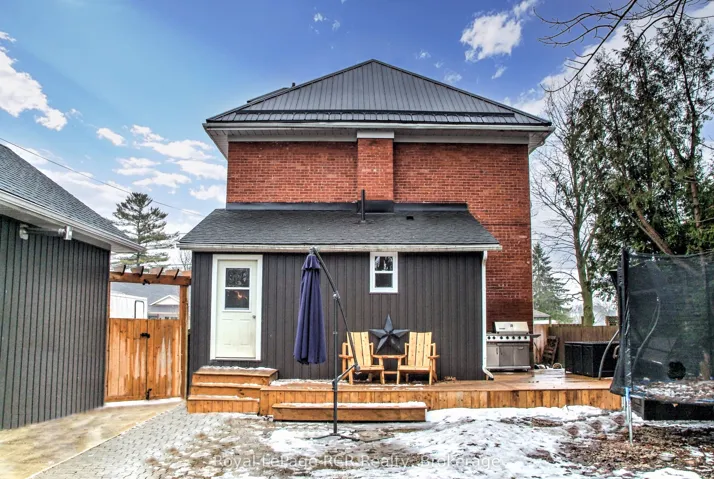 +"PublicRemarks": "Charming 4 bed, 2 bath century home in a fantastic Hanover location. This wonderful family home is located close to schools, parks, and recreation areas and within walking distance to downtown shopping and amenities. The main floor hosts the kitchen, living room with electric fireplace, large dining room, spacious foyer, pantry/storage area, as well as a recently updated 3-piece bathroom with laundry area, and mud room. The second level hosts three spacious bedrooms, a 4-piece bath, and a bonus room with access to the balcony and the third-level primary bedroom. Further, the home impresses with many recent updates, including a steel roof, furnace and AC (2019), hot water tank (2025), deck and siding and new flooring throughout the main floor. The large garage/shop (37' x 15') features a handy loft area and additional storage. The home has two electrical services and great potential for a duplex use. The backyard with a gravel surface is great for play, cozy fires and relaxing. The paved and concrete double driveway can easily accommodate 6 large or 8 medium-sized cars."