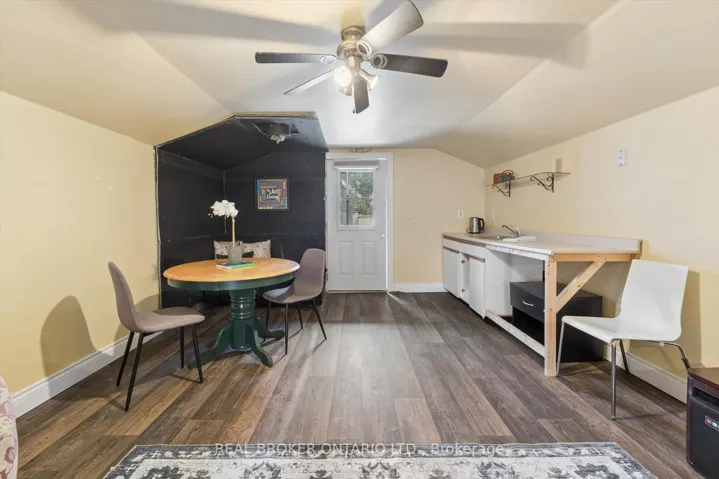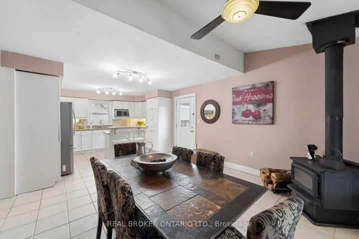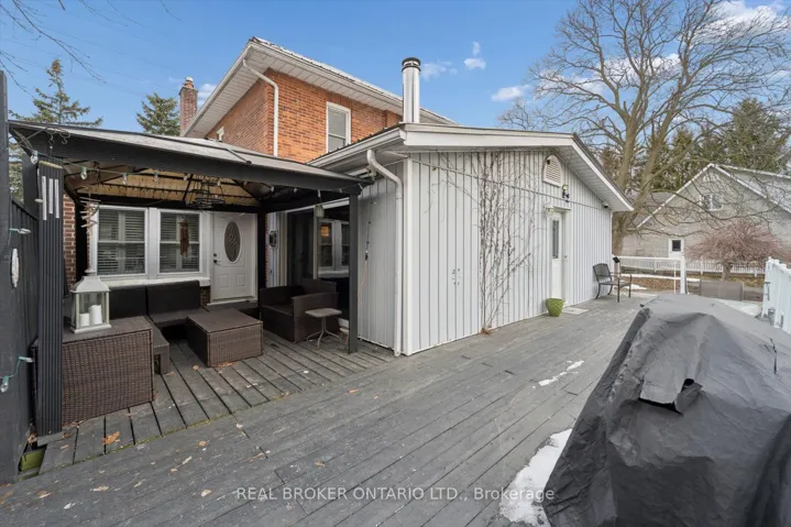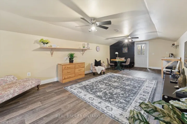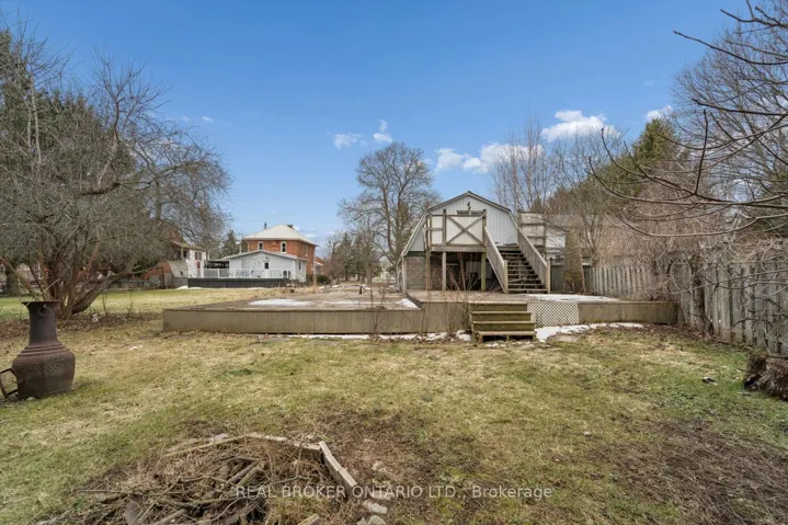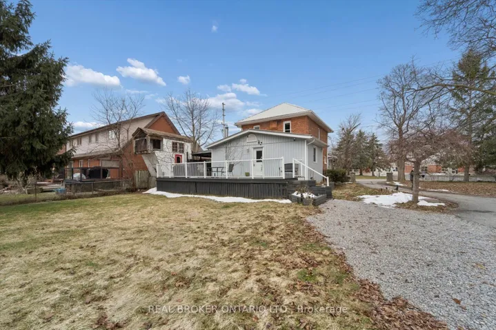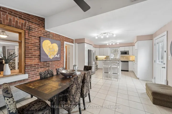 +"PublicRemarks": "Welcome to this charming brick beauty set on an impressive and private large lot, where space is not a luxury, it is a lifestyle. A classic white picket fence frames the property while a covered front porch and wrap-around rear deck offer the perfect spots to enjoy morning coffee or unwind at the end of the day. The expansive driveway offers parking for more than 10 vehicles, plus a detached garage for added convenience. Above the garage is a bonus finished loft with a kitchenette and a 3 piece bathroom (Not winterized). Step inside and enjoy the warmth and character of this incredible home. A large eat-in kitchen features a brick wall, island, tons of cupboards, pantry, granite countertops, and a cozy wood stove plus 2 walk outs! One leads directly to a covered gazebo, making indoor-outdoor entertaining effortless. The living room offers wood flooring, french doors, a built in bookcase and a gas fireplace. Upstairs, the primary bedroom offers two windows, a double door closet, plus a walk-in closet, ceiling fan and original wood flooring. Two additional bedrooms also feature wood floors and ceiling fans. One bathroom on the main floor and one upstairs featuring a claw foot tub. The office/sunroom boasts California shutters, built-in shelving, and a separate entrance to the deck. The basement includes a cold cellar and abundant storage. Step outside and discover a backyard that feels like your own private park with mature trees including maple, pine, apple, pear, and cherry...complete with a tree house, fire pit and lush gardens. It is private, picturesque, and ready for memory-making. A standout feature is the large brick double barn with a finished loft, running water, ceiling fans and endless potential for hobbyists, entrepreneurs, or an additional workspace. This is more than a home - it is a space to grow, gather, build, and breathe. Close to shopping, 401 and schools."