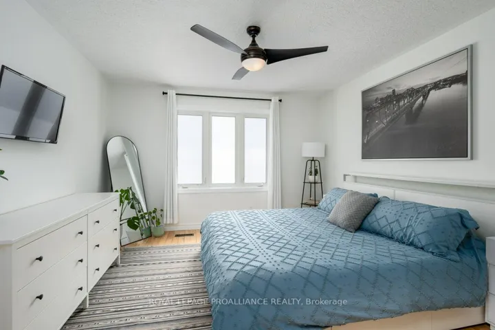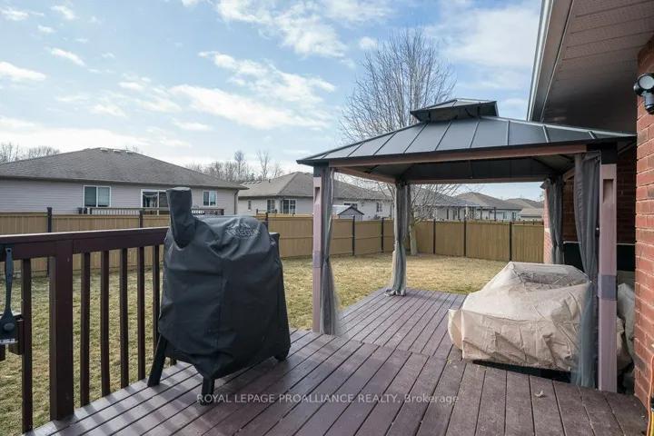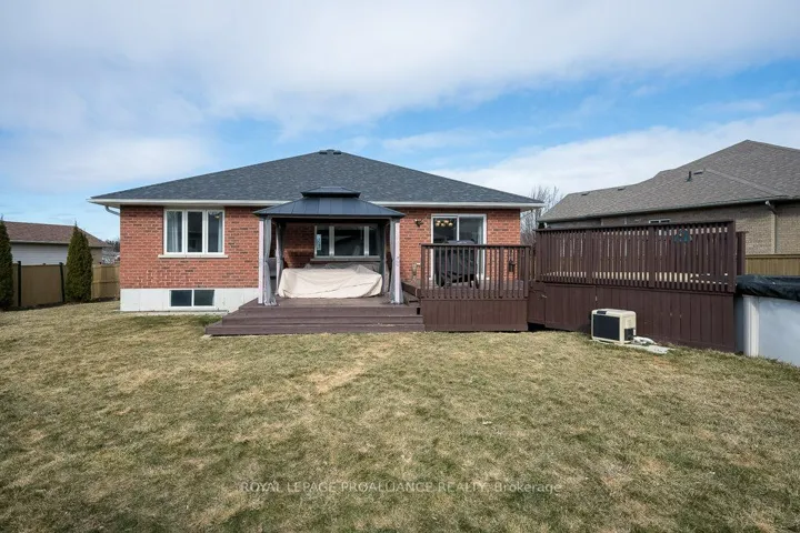 +"PublicRemarks": "Welcome to this immaculate bungalow, perfectly situated on a premium pie-shaped lot and loaded with impressive updates throughout. Offering 4 bedrooms and 3 full bathrooms, this home is ideal for families, professionals, or those seeking the ease of main-floor living. Step inside to a bright, open-concept layout featuring a cozy natural gas fireplace in the living room, beautifully enhanced with newly added stone for a warm and inviting feel. The updated kitchen is a true showstopper, complete with high-end cabinetry extended to the ceiling with crown molding, quartz countertops, a stylish backsplash, under-valance lighting, recessed lighting, and a composite granite sink. Quartz counters are also offered in both main floor bathrooms, adding a modern and cohesive touch along with stunning updated light fixtures and fresh paint throughout the majority of the home. The primary bedroom offers a spacious step-in closet and a private 4-piece ensuite, while a second bedroom and an additional full bathroom are nearby for convenience. Main floor laundry completes the functional layout. The fully finished lower level extends your living space with two additional bedrooms, a den, a large rec room, a 3-piece bathroom, and a utility room with ample storage. Outside, enjoy your private backyard retreat featuring a spacious deck with a gazebo and an 18' above-ground pool with a new gas heater (installed in 2025), perfect for summer entertaining. Additional updates: Shingles and Central Air (2023). Located just steps from a beautiful 1.5-acre park with play structure and mature trees, and within walking distance to the Trent River, trails, splash pad, parks, and downtown Frankford amenities. Conveniently situated under 10 mins to Highway 401 and only 15 mins to CFB Trenton and Belleville's Quinte Mall. Set in a sought-after community of families, professionals, and retirees, this turn-key home offers the perfect blend of comfort, style, and location."