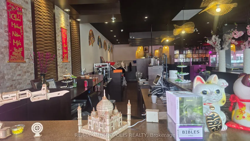 +"PublicRemarks": "Established Vietnamese cuisine restaurant in the busy King George Plaza, Brantford - open to rebrand, surrounded by anchors like Food Basics, Tim Hortons, and a medical centre. Known for its authentic menu, strong income, and loyal clientele. This 4,045 sq. ft. restaurant offers 150+ seats and three washrooms (two customer accessible + one staff). Features a designated bar area with potential to add liquor service, and a large storage room for dry goods and takeout supplies. Extensive leasehold improvements include a 25-ft hood, 6-burner stove, 4 hot pots, walk-in cooler & freezer, and many more, along with $150K+ in premium stainless steel equipment and luxury finishes. Ample plaza parking, 1.5 years remaining on lease with a 5-year renewal option. opportunity to own a thriving Vietnamese restaurant in one of Brantford's busiest commercial plazas!"