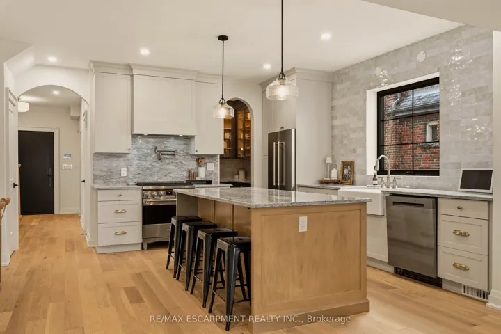 +"PublicRemarks": "Step into a beautifully reimagined turn-of-the-century 2.5-storey brick home, where extensive renovations and thoughtful additions have transformed it into a stunning blend of historic charm and modern living-all perfectly set in the heart of downtown Dundas. A charming interlock walkway winds through lush perennial gardens to a welcoming covered front porch-an ideal spot to enjoy your morning coffee while taking in the peaceful, highly sought-after neighbourhood. Inside, timeless character blends beauty with thoughtful modern updates. The fully renovated main floor, complete with a seamless addition, showcases a dream kitchen designed to inspire both everyday living and effortless entertaining. Rich hardwood floors, beautiful office space, a warm and inviting living room, and a dedicated dining area create the perfect backdrop for gathering with family and friends, while a convenient mudroom offers easy access to the 3/4 garage. Upstairs, a stunning second-floor addition and renovation elevate the home with a beautifully finished primary retreat, featuring a spacious walk-in closet and a spa-like 5-piece ensuite. Additional bedrooms are generously sized and complemented by a well-appointed main bathroom. The third level offers even more versatility, with two extra bedrooms, perfect for that growing family or as exercise and creative spaces. This move-in ready gem offers the perfect balance of historic charm and modern living-an exceptional opportunity in one of Dundas' most desirable locations."