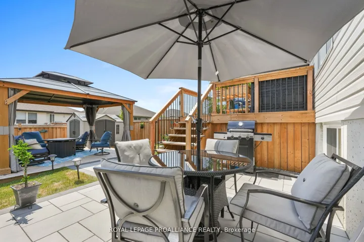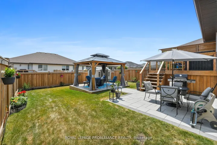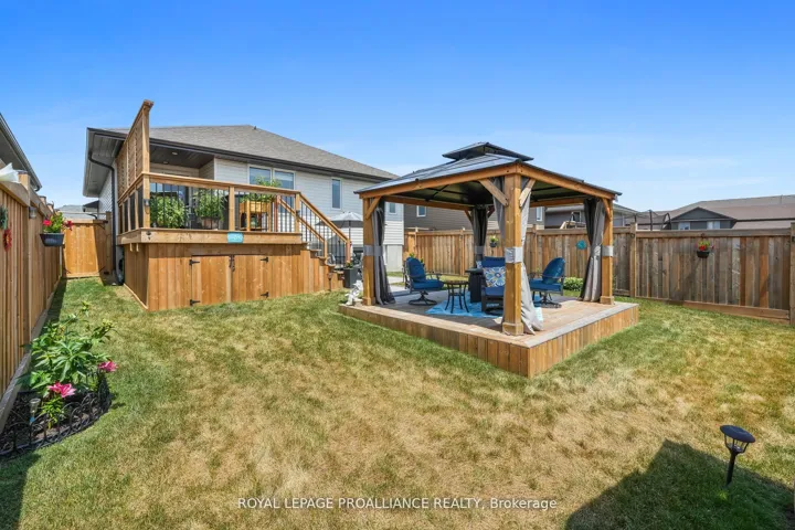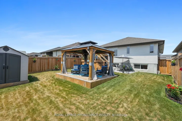 +"PublicRemarks": "Better than NEW! Just move right in & enjoy everything that is already done for you...newer appliances, landscaping, driveway paving, fencing, basement finishing...it's all been completed! This impeccably cared-for home, built in 2022 with over 1700 sq ft of finished space, offers modern living in a sought-after neighbourhood. Step into the generous front entryway and continue to the open-concept main floor layout. The sun-filled kitchen, dining and living areas are ideal for entertaining, with large south-facing windows that fill the space with natural light. The kitchen is a chef's dream, complete with quartz countertops, loads of ceiling-height cabinetry, stainless steel appliances, a pantry and a center island with a breakfast bar. Step out from the dining area onto the expansive & upgraded partially covered rear deck, complete with a custom privacy louver system, perfect for relaxing or entertaining outdoors. The fully fenced backyard has been professionally landscaped and includes a massive wooden gazebo and patio area for al fresco dining or quiet evenings under the stars. The main floor features two large bedrooms, a 4pc bath with ensuite privilege to the Primary Bedroom, plus stylish & durable laminate flooring. Downstairs, the fully finished lower level is the ultimate retreat with a cozy gas fireplace and built-in speakers in the oversized rec room...perfect for movie night or relaxing after a long day with a book. A third bedroom can double as a guest room or home office, with a convenient full 4-piece bathroom located just beside. The laundry room includes a sink for added functionality and ease with daily tasks. Enjoy direct entry from the attached garage into the foyer, perfect for busy days and easy unloading. Located in a quiet, friendly neighbourhood walkable to schools, parks & everyday amenities. Just a short drive to downtown Trenton, conservation trails, marina, Batawa Ski Hill and the Bay of Quinte for boating and ice fishing!"