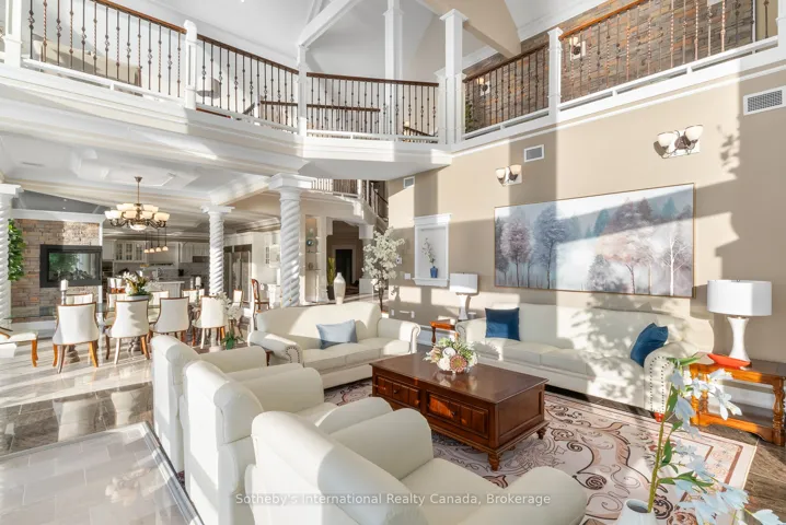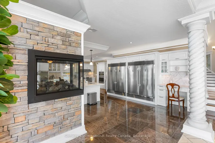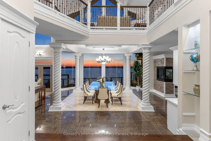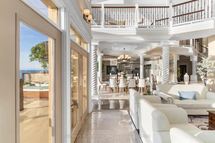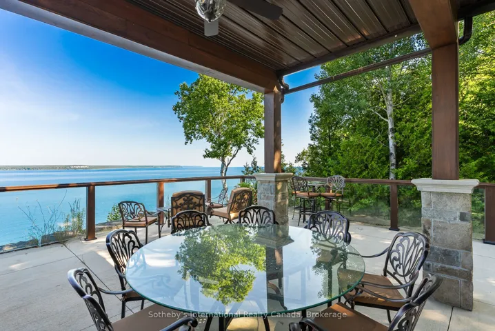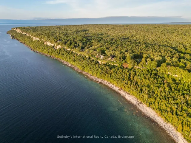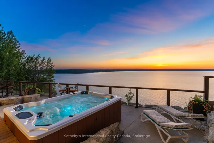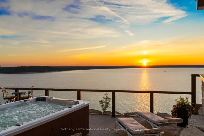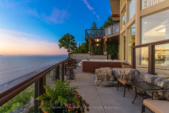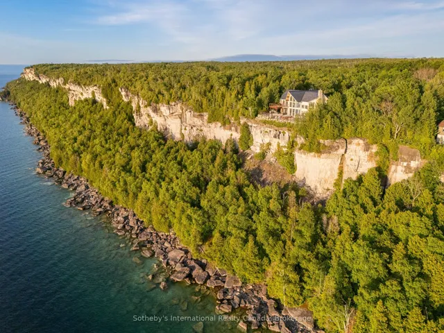 +"PublicRemarks": "The Peninsula Perch is a 6,418 sq ft cliffside masterpiece perched 300 ft above the turquoise waters of Georgian Bay, offering nearly 4 km of uninterrupted northwest-facing views and world-class sunsets over Whippoorwill Bay. This architectural feat, features R45 ICF construction from foundation to trusses, topped with a timeless slate roof and a concrete driveway leading to a triple-car garage with heated floors and EV charger rough-in. Inside, the great room boasts soaring 33-ft ceilings anchored by solid marble pillars and a grand fireplace with a custom marble mantle, while the mezzanine sitting area and primary bedroom balcony offer a front-row seat to the escarpment. The professional chef's kitchen is equipped with a large island induction cooktop with a pop-up air vent, a walk-in pantry, four Sub-Zero fridge/freezer units, two dishwashers, and an ice maker. Designed for comfort and efficiency, the home features radiant heated floors throughout and the convenience of primary bedroom laundry. Complete privacy with an acre to the left of protected association land and 13 acres to the right of Crown land. Street access to the Bruce trail.The outdoor living space is a maintenance-free oasis with a covered porch, large hot tub, and high-end Astro Turf grounds, all situated in a designated Dark Sky community just 30 minutes from the 5,000-ft runway at Wiarton Keppel International Airport."