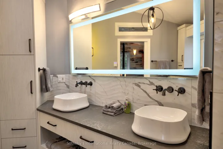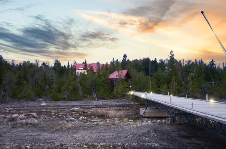 +"PublicRemarks": "Experience lakeside luxury at this 4,000 sq ft cottage on Lake Huron's pristine shores. With sunset views, crystal-clear waters, and a serviced dock for 40 vessels, it's a serene escape. The 1-acre lot features 110' frontage, hosting a fully updated cottage with 2+2 bedrooms and 2+1 bathrooms. Vaulted ceilings, skylights, and a stone fireplace create warmth. The lower level has 2 bdrms, a bath, woodstove, games area, and a walkout to the bay. The chefs kitchen boasts granite counters, an island, two sinks, a breakfast bar, and a gas stove. Outdoor entertainment thrives on the composite deck with Lake Huron views and an elevated hot tub gazebo. Additional features include a 1,500 sq ft outbuilding for a RV (with an EV charger), workshop, and woodstove. A propane generator ensures uninterrupted power. A composite boardwalk leads to a cabana at the water's edge, or take the UTV down the path to the lake."