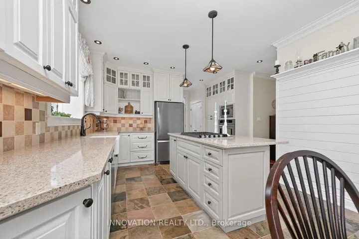 +"PublicRemarks": "Set on the largest lot in Victoria Park, this exceptional 2-storey home offers the perfect blend of space, privacy, and thoughtful upgrades on over 4 acres of beautifully landscaped land with private trails to explore.From the moment you arrive, the full stone exterior and welcoming front porch set the tone. Inside, you'll find carpet-free living with hardwood floors and 9' ceilings on both the main and upper levels, creating a bright and inviting atmosphere. Expansive windows throughout frame the surrounding landscape and fill the home with natural light.The main floor features a spacious open-concept layout with a stunning picture window overlooking nature, a cozy gas fireplace, and a custom kitchen complete with ceiling-height cabinetry, quartz countertops, gas cooktop, built-in oven, and ample storage. A separate office, powder room, and generous foyer add to the home's functionality.Upstairs offers three large bedrooms, including a primary retreat with a walk-in closet and ensuite featuring a tiled walk-in shower and heated floors. The main bathroom includes double sinks, a walk-in shower, soaker tub, and heated flooring. Second-floor laundry adds convenience.The fully finished basement includes a large family room with wet bar, electric fireplace, and custom built-ins, with direct access from the garage.The oversized double attached garage is fully insulated, drywalled, features epoxy flooring, and hot and cold water. A 32' x 40' detached shop offers 12'4.5" ceilings, a 10' door, heat (natural gas), water, epoxy floors, and a 60-amp panel.Enjoy a brand new 27' above ground pool, salt chlorinator, and new filter head (2025), professionally installed fire pit with landscaping (2025), new septic (2025), and a 14k W Generac generator (will run entire home). A rare turnkey property offering space, privacy, and exceptional indoor and outdoor living.Hydro $3149/2025, Gas $1866/2025, Internet is Cogeco"