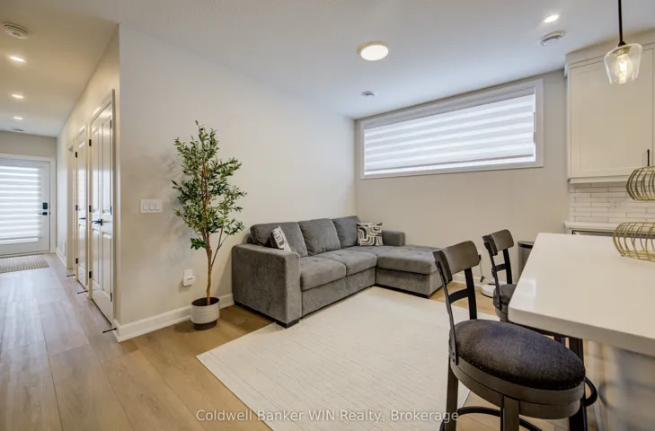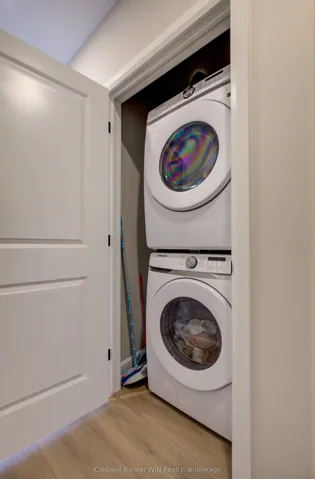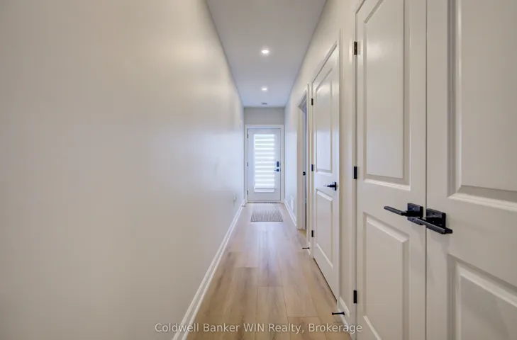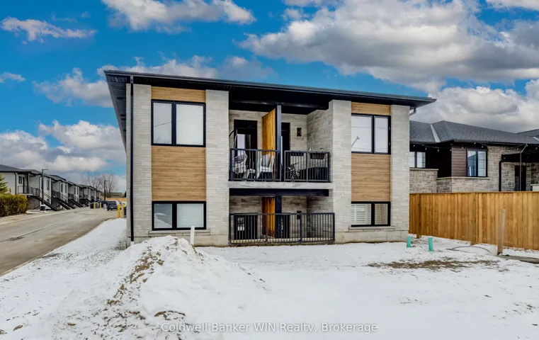 +"PublicRemarks": "Welcome to this beautifully finished stacked townhouse condo offering stylish, low-maintenance living in a modern setting. This end-unit suite is part of an exclusive block of four and located on the lower level. Perfect for those seeking convenience and privacy. Less than one year old, this home showcases 8.5 foot ceilings and bright modern finishes throughout. The layout features an inviting eat-in kitchen with quartz countertops and tiled backsplash, that's open into the living area with a cozy electric fireplace. New stainless steel kitchen appliances (fridge, stove, dishwasher and microwave) and window coverings are included with the sale of this home. The spacious primary bedroom includes a walk-in closet with custom closet organizer, California shutters, and a 3-piece ensuite bathroom. The second bedroom provides flexibility for guests, a home office, or additional living space. A well-appointed 4-piece bathroom adds further convenience. You can step outside to enjoy your own private walk-out balcony and with all exterior landscaping taken care of, this property offers true low-maintenance living. In-suite laundry with a stackable washer and dryer also adds to everyday ease and functionality. Located in the welcoming community of Mount Forest, this home offers the charm and convenience of small-town living. Enjoy the ability to walk downtown for local shopping, take advantage of nearby walking track and trails, and explore everything the town has to offer, including a Sports Complex, active sports and seniors clubs, a hospital, and convenient grocery options."