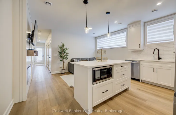 +"PublicRemarks": "Discover low-maintenance waterfront living in this fully renovated condominium town home, ideally located for retirees and professionals. Enjoy the best of convenience and nature with proximity to parks, scenic walking trails, hospitals, the Cataraqui Golf and Country Club, and downtown, all within a friendly condominium community. Entering the home, you're welcomed by a tiled entryway with direct garage access and a convenient 2-pc powder room. The open-concept living and dining area features a gas fireplace, creating a warm ambiance as you take in panoramic views of the bay. The adjoining, fully renovated kitchen boasts stainless steel appliances, elegant quartz countertops, an undermount farm sink, and pantry closet, a perfect mix of form and function. Step outside the patio doors to a spacious deck, overlooking beautiful Lake Ontario enclosed with a gate to keep a pet safe and secure. The main staircase is illuminated by a bright skylight, allowing natural light to flood the home throughout the day. Upstairs, every bedroom offers a stunning water view, with west-facing sunsets from the front bedrooms and serene east-facing sunrises over Lake Ontario from the primary suite. The main3-pc bathroom includes a walk-in shower with a seat, vanity with room for storage as well as a linen closet in the hall for added convenience. The primary bedroom, a true retreat, features vaulted ceilings reaching nearly 13', oversized windows overlooking the lake, a newer gas fireplace, and a luxurious 4-pc ensuite with a tiled surround. Downstairs, the large rec room allows space for guests or kids with full ceilings, large windows looking into the bay, and pot lights throughout, the lower level feels airy and welcoming. The basement also features laundry, a wash sink, and ample storage."