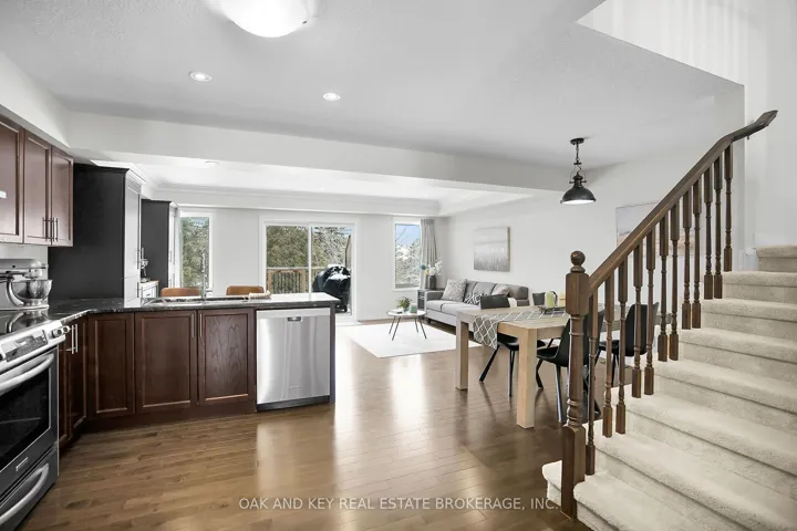 +"PublicRemarks": "Backing onto a quiet creek and protected greenspace, 8 - 55 Harrison Street is a move-in-ready Stratford townhouse that delivers a rare combination of privacy, space, and location. This isn't a typical townhome - it's a lifestyle upgrade in one of the city's most desirable pockets. The main floor is bright and open, anchored by a granite kitchen with ample cabinetry and serious prep space. It flows naturally into the dining and living areas - ideal for everyday life and effortless entertaining. Step out onto the rear deck overlooking mature trees and flowing water. No rear neighbours. Just calm. A two-piece bath completes the level. Upstairs offers spacious bedrooms with generous closets, a versatile second-floor family room perfect as a home office, media lounge, or reading retreat, and the convenience of upper-floor laundry. The walkout basement is where this home truly separates itself. Thoughtfully finished with a new full bathroom, a stylish bar, and a custom-built-in featuring an electric fireplace, it's a perfect entertaining space. Walk out directly to private greenspace, framed by trees and a creek - year-round beauty and seclusion. Located in a neighbourhood known for its strong community feel, walkability, and proximity to parks, trails, dining, and Stratford's renowned arts and culture scene. Turnkey, flexible, and set against a backdrop most freehold owners would envy. This is the one."