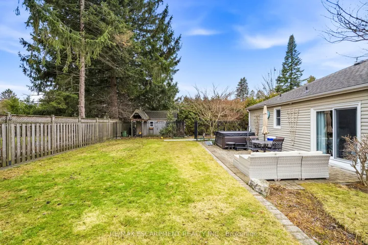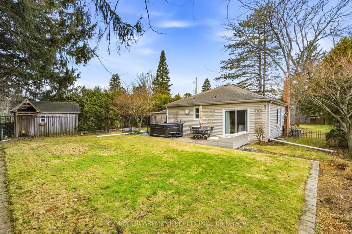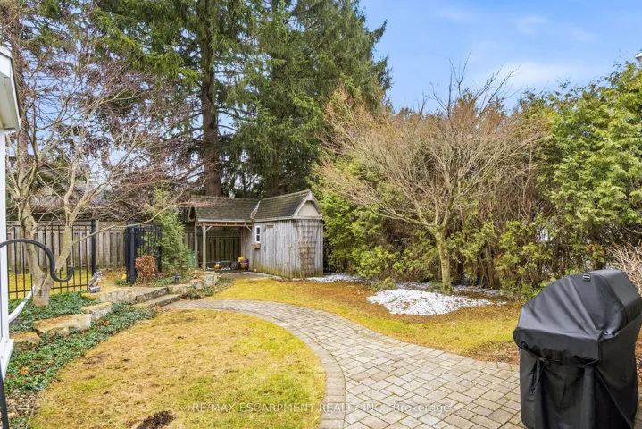 +"PublicRemarks": "Welcome to this beautifully maintained home in the highly desirable Oakhill neighbourhood in the heart of Old Ancaster. Situated on a large, mature lot, this property offers charm, space, and exceptional outdoor living. The main level features 3 spacious bedrooms and an updated 3piece bathroom, along with a bright living and dining room combination with hardwood floors throughout and a cozy gas fireplace. The kitchen is well appointed with brand new quartz countertops (2026) and stainless steel appliances. The primary bedroom features built ins as well as sliding doors to the backyard. Stunning finished basement offers excellent additional living space with a large rec room, fourth bedroom, laundry area, and an oversized bathroom featuring a soaker tub and separate shower. The basement walk-up to the side entrance provides excellent potential for a future in-law suite or secondary unit. Step outside to your private backyard oasis with beautiful landscaping, mature greenery, and plenty of space to relax or entertain. Additional features include a detached single car garage with new concrete floor, an 8' x 16' storage room addition beside garage, and a separate backyard shed. A gas BBQ line adds extra convenience for outdoor entertaining. A rare opportunity to own a charming bungalow in the coveted Old Ancaster community, close to parks, schools, and all local amenities."