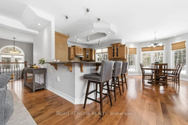 +"PublicRemarks": "WHERE TO BEGIN! This Custom built all brick/stone 3 bedroom bungalow is located on a quiet street, just 10 minutes from downtown Pembroke and 15 minutes to Petawawa. Located on 6.83 acres, this property is zoned RU and has a variety of uses. The home is ideal for Executives, Business Owners, Retirees who are looking for a Move In Ready home that is easy to care for. Privacy and Nature are some of the main reasons why Rahns Rd. is one of the most desirable in Laurentian Valley. This home has an attached double garage with direct access to the main and lower floors and propane heater. A stand alone 3 vehicle + garage/shop(32'x40')is ideal for those extra toys, or a shop (insulated and hydro). The Backyard has a large level lawn, firepit, shed that overlooks the forest. Ideal for bird watching and winter deer visits. The dual level patio has plenty of room to entertain. A new septic tank (2025) was installed (1,000 gallons).. and side cement walkway(2025). The large front door and bright foyer welcomes you and your quests to a spectacular layout. The open concept main floor has gleaming hardwood floors, large bright windows , makes it easy to move, unpack and enjoy! The Kitchen is large enough for many chefs! The breakfast bar is so handy, and elegant pendant lights exudes warmth. All appliances are included. The huge quartz counters and numerous cabinets will satisfy all the chefs! The Main floor laundry is very handy. Off the living room is the primary king sized bedroom with large walkin closet and ensuite. The propane insert fireplace is so handy and adds instant warmth to the main level. The bright lower level can be reached via the new hardwood stairs/banister or via the rear door, or garage. 2 large bedrooms with large closet space and a large recroom with a huge washroom with separate tub and shower (lots of potential for a granny suite). Bell High Speed Fibe available.New Furnace (2019) Newly painted interior (2025). Enjoy Beautiful fall colours.."