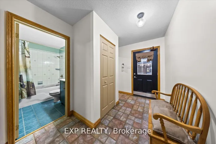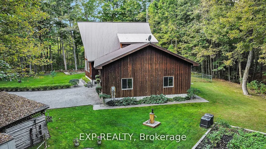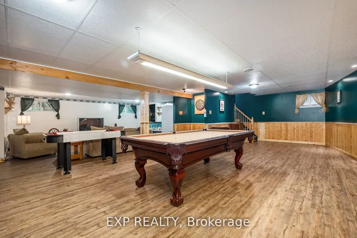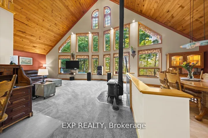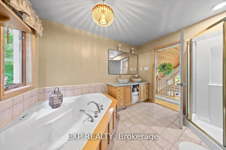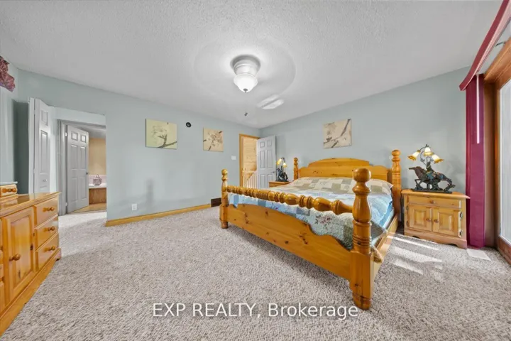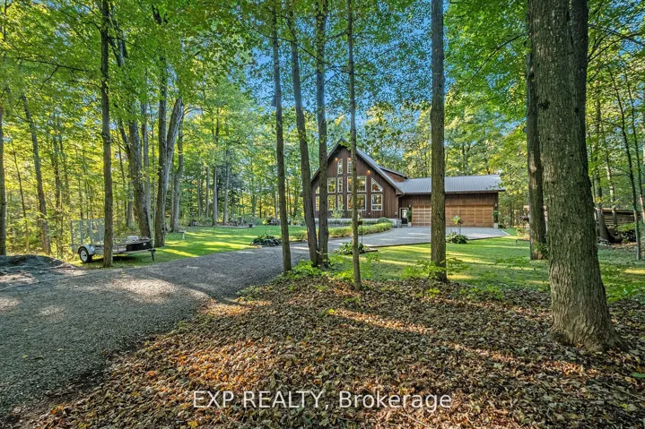 +"PublicRemarks": "Welcome to your dream home! This stunning custom-built residence, clad in Western Red Cedar board & batten, is set on6.27 acres of beautifully maintained, wooded land with a private driveway offering serene seclusion and natural beauty. The home features an energy-efficient geothermal heating and cooling system, a Vermont Castings woodstove, and top-tier insulation throughout both the house and garage for year-round comfort. Step inside to find a freshly painted main level with brand new carpeting and a thoughtfully designed layout featuring a full 3-piece bathroom, laundry room, bedroom, and a dramatic 26'vaulted ceiling with wall-to-wall windows that flood the space with natural light. The remodeled kitchen includes stainless steel appliances, granite countertops, and a convenient breakfast bar perfect for entertaining or everyday living. Upstairs, you'll find a cozy guest bedroom, a 5-piece bathroom, a luxurious therapeutic tub included, and a spacious primary bedroom with a private balcony overlooking the peaceful, tree-lined surroundings. Both bathrooms have been updated with stylish new vanities, blending modern finishes with timeless charm. The finished basement offers a large recreation/exercise room, cold storage, and a utility/storage area. A pristine 4-car garage features an impeccably finished, climate controlled workshop ideal for hobbyists or serious DIYers. Outside, enjoy a calming patio with a custom pond, a vegetable garden, a greenhouse, and ample storage buildings. Explore the scenic trails or relax beside the charming creek that runs through the property. This one-of-a-kind retreat blends comfort, functionality, and natural beauty an exceptional opportunity for those seeking privacy and connection to the outdoors. Only12 min. from Kemptville and 6min. to beautiful Merrickville. The basement furniture (pool table, hockey table, exercise equipment, couch, chair and TV) is included in the sale."