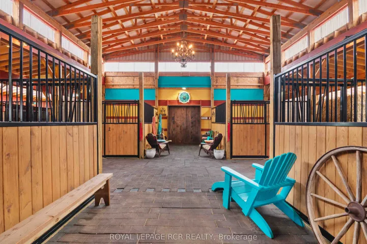 +"PublicRemarks": "73.5 acre horse farm offering a rare blend of equestrian infrastructure, privacy, and natural beauty, set along the headwaters of the Saugeen River. Rolling fields, mature cedar/spruce with a cabin, and an extensive trail system create a setting that feels like your own private provincial park. Purpose-built for horse enthusiasts, the property features a 70x130 indoor riding arena, 10-stall barn with rubber matted stalls, heated tack room, wash stall, multiple run-in shelters, and approximately 30 cross-country jumps. Outdoor sand ring, perimeter riding trails, and over 10 km of paths provide endless opportunities to ride and explore. The 3-bedroom home offers more than 2300 sq ft with a main floor primary suite, multiple living areas, wood burning fireplace, and views of the surrounding land. Solar panels provide additional income, and the property offers organic farming potential with over 24 years of chemical-free use. At the heart of the property, the river winds through the landscape, creating a peaceful, ever-changing backdrop. Wildlife sightings, quiet walks through the bush, and moments of complete privacy are part of everyday life here. Trails meander through cedar groves, open fields, and along the water's edge, offering a true connection to nature. This is more than a farm, it is a lifestyle property shaped by years of care, vision, and experience. Ask for the "Life on the Farm" feature package to fully appreciate all this property has to offer."