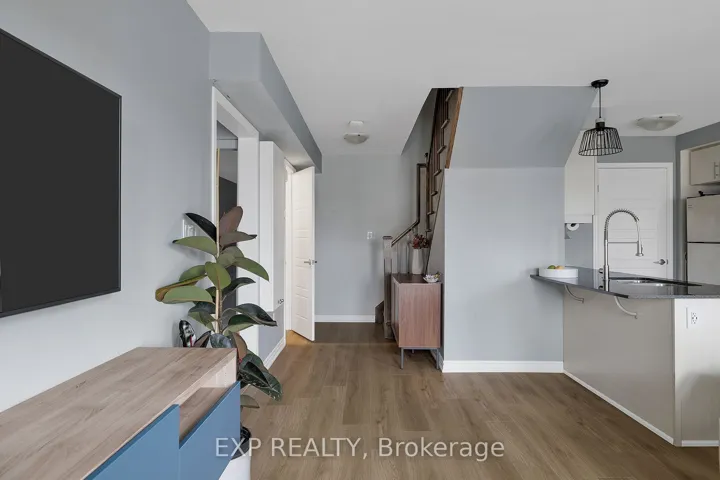 +"PublicRemarks": "Welcome to this executive end-unit stacked townhome by Mattamy, located in the highly desirable Huron Park community. Move-in ready and thoughtfully upgraded, this carpet-free home features a bright open-concept layout with 9-foot ceilings and large corner windows that fill the space with natural light. This upgraded two-bedroom layout includes a charming Juliet balcony. Both bedrooms offer their own ensuite bathrooms and walk-in closets, providing comfort, privacy, and functionality. The modern kitchen is equipped with granite countertops, a stylish tile backsplash, stainless steel appliances, and a separate pantry for additional storage. Enjoy the convenience of in-suite laundry with a stacked washer and dryer, along with an oversized second-floor deck that is perfect for relaxing or entertaining. The home includes thousands of dollars in builder upgrades, such as two hardwood staircases, upgraded laminate flooring, granite countertops, and a third bathroom. One owned parking space is conveniently located directly in front of the unit for easy access. Situated in the sought-after Huron Park neighbourhood, this home is just steps from scenic trails, green spaces, parks, shopping, restaurants, schools, and sports complexes, offering a perfect balance of modern living, quality finishes, and an excellent location."