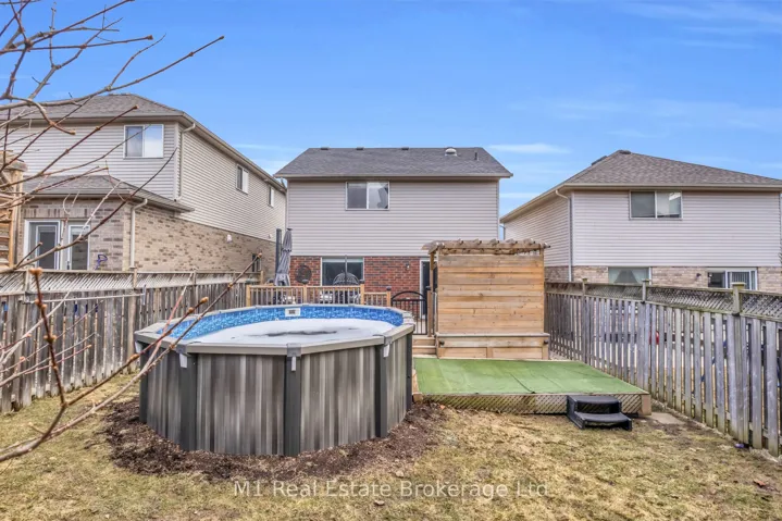+"PublicRemarks": "Welcome to this move-in ready 2-storey home in Guelph's sought-after east end, set on a quiet, family-friendly street close to parks, trails, schools, transit and everyday amenities. The main floor offers a bright, functional layout with an eat-in kitchen, dining area and inviting living space with walkout to the backyard. Step outside to a fully fenced yard designed for everyday living and entertaining, complete with a deck, above-ground pool and hot tub. Upstairs features three well-sized bedrooms and a full bathroom, including a spacious primary with walk-in closet. The fully finished basement adds valuable extra space with a built-in home theatre setup, Murphy bed for guests, home office area and additional storage. With numerous updates throughout and a great balance of indoor and outdoor living, this is a solid opportunity to get into a well-maintained home in an established neighbourhood."