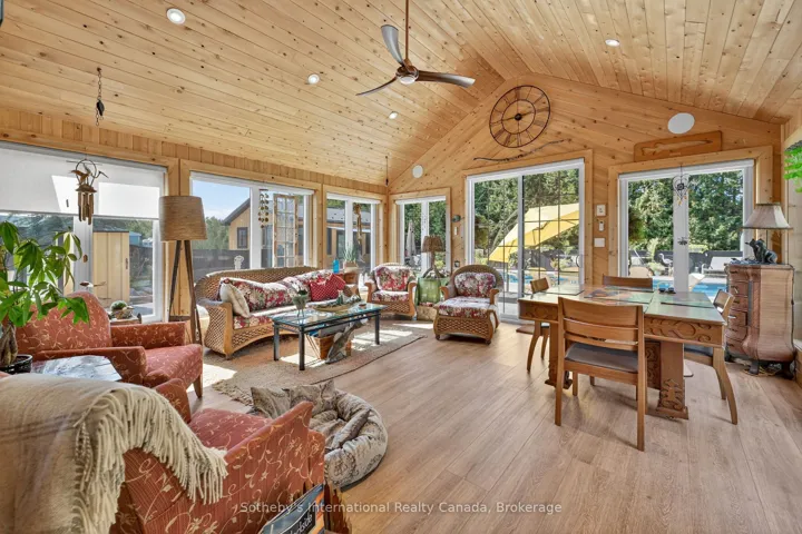 +"PublicRemarks": "Direct access to Lake Muskoka. Welcome to your private family compound, 3.6 acres of completely flat land, perfectly positioned at the mouth of the Muskoka River. This exceptional property offers the ultimate blend of waterfront lifestyle, privacy, and multi-generational living. The beautifully designed 4,000sq.ft. main residence features a bright open-concept layout, anchored by a spacious chef-inspired kitchen and expansive living areas ideal for entertaining. With 5 bedrooms and 3 bathrooms, the home is thoughtfully designed for both everyday comfort and hosting family and friends. Complementing the main home is a 1,000sq.ft Bunkie offering two fully self-contained suites, each complete with its own kitchen and bathroom-perfect for guests, or extended family. In total, the property offers 7 bedrooms and 5 bathrooms across all living spaces. Outdoors, enjoy a true resort-style setting featuring a sparkling pool, outdoor kitchen, and sauna-creating the perfect space to relax and entertain all summer long. The level, wheelchair-accessible boathouse provides effortless waterfront enjoyment, while the property's location offers quick and convenient access to the open waters of Lake Muskoka. For hobbyists and outdoor enthusiasts, the property is complete with a 6,000sq.ft. barn for all your recreational toys, along with a 2,000sq.ft. workshop ideal for storage, maintenance, or creative pursuits. A rare opportunity to own a versatile and luxurious Muskoka retreat enriched with history, designed for gathering, entertaining, and making lasting memories. A true art piece - truly Muskoka, truly one-of-a-kind!"
