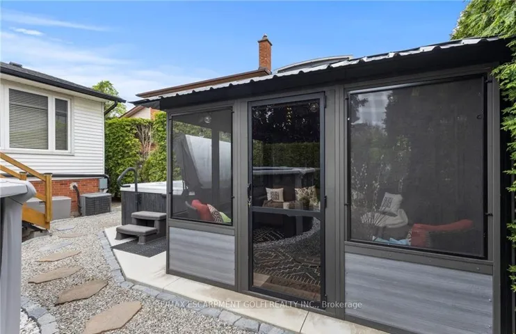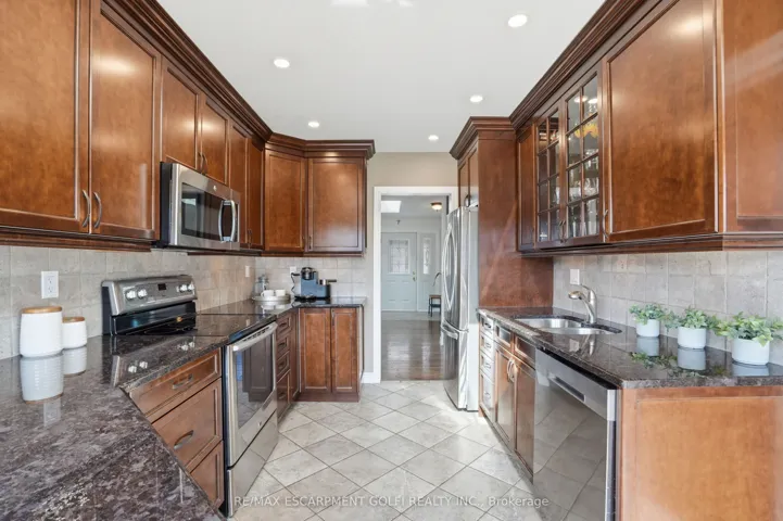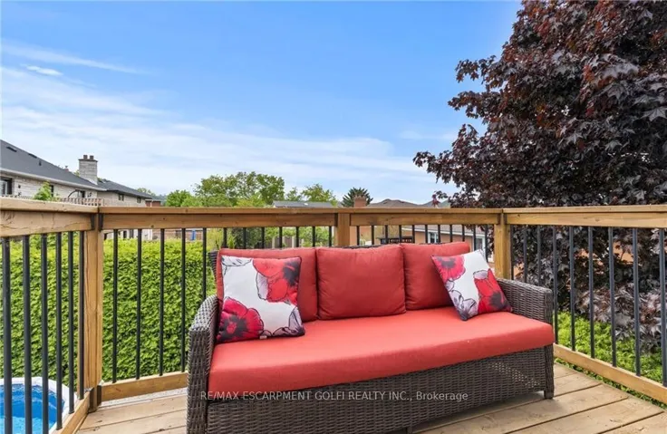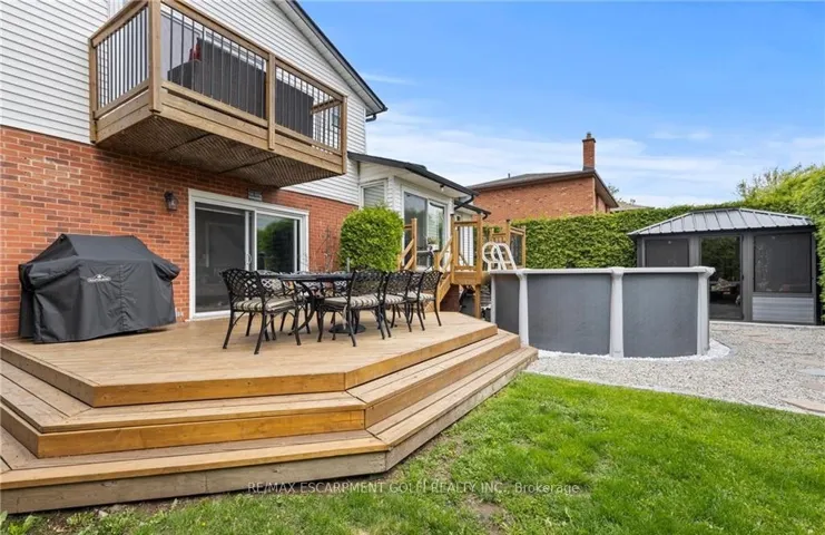 +"PublicRemarks": "Beautifully maintained 4-bedroom, 4-bathroom side split located in one of Stoney Creek's most sought-after neighbourhoods. Offering over 2,000 sq ft of finished living space across multiple levels, this home provides a functional and versatile layout perfect for families and entertaining. The bright main level features two skylights, an updated kitchen with sliding doors to the backyard, and a welcoming family room with an cozy fireplace. The primary bedroom boasts its own private deck-an ideal retreat to relax and unwind. The fully finished lower level adds valuable living space, complete with a cozy gas fireplace and an impressive bar, perfect for hosting or enjoying quiet evenings at home. Step outside to your private backyard oasis, featuring a two-tiered deck, saltwater above-ground pool, hot tub, and a gazebo with removable windows for extended seasonal enjoyment. Additional highlights include a double garage, ample driveway parking, and a convenient location close to schools, parks, and major routes. A true move-in ready home offering comfort, space, and lifestyle."