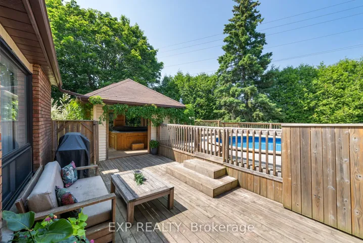 +"PublicRemarks": "This warm and welcoming 3+1 bedroom, 2 bathroom home is full of character and ideal for family living. Featuring a lofted ceiling in the living room, a kitchen with freshly painted cabinets, reclaimed wood island, and built-in seating, plus a large formal dining room perfect for entertaining. Upstairs, you'll find three bedrooms and a Jack & Jill ensuite, while the finished basement adds a rec room and additional bedroom perfect for guests or a home office. Set on a large corner lot at the end of a quiet cul-de-sac, this property is an outdoor lovers dream, complete with a deck overlooking an above-ground pool, new roof (2025), hot tub gazebo, kids play structure, fire pit, backyard orchard and even a chicken coop! With ample driveway parking and main floor laundry, this home blends function, charm, and fun."