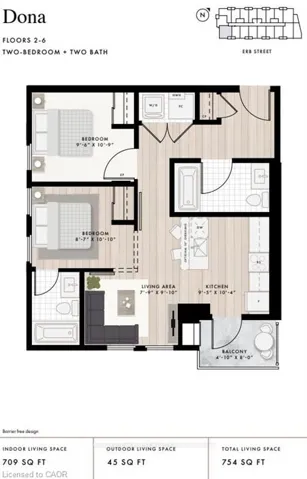 +"PublicRemarks": "Welcome to your new home at Moda in Waterloo! This is a 2 year old boutique condo building offering contemporary living, just minutes to Uptown or UW/Laurier. This 5th floor corner 2 bedroom, 2 full bathroom suite features 709 sq. ft. of interior space and a 45 sq. ft. private balcony, creating a comfortable and stylish urban home. The open-concept kitchen and living area is bright and cozy. The modern kitchen features beautiful white quartz countertops, stainless steel appliances, white herringbone tiled backsplash, and dark cabinetry. The unit features a warm brown tone vinyl flooring, with a dark marble style tile flooring in the bathrooms. The primary bedroom is generously sized and the second bedroom works well for a variety of uses with an ensuite/second bathroom - either a home office, spare bedroom, child's bedroom or cozy retreat room. The in-suite laundry closet adds everyday convenience, along with use of a designated underground garage parking spot.Residents have access to the pet wash, bike repair set, co-working space, and party room. Ideally located near shopping, dining, transit, universities, and everyday amenities."
