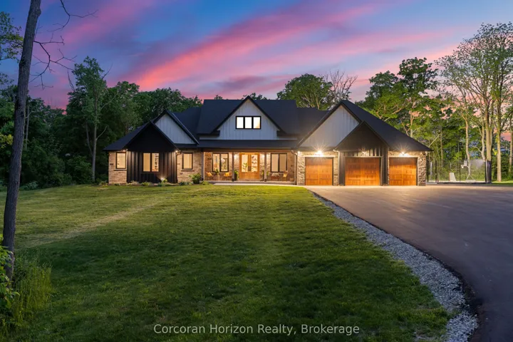 +"PublicRemarks": "Your dream countryside retreat awaits. Minutes from everyday conveniences, this custom-built modern farmhouse bungalow offers a rare blend of luxury comfort and natural beauty. Set on nearly 6 private acres with breathtaking panoramic views of the Grand River and direct access to the Grand Valley Trail System, this exceptional 2023 built home is thoughtfully designed for multi-generational living, income potential and elevated everyday living. With over 6,000 sqft of beautifully finished space the home features 7 bedrooms 6.5 bathrooms 3 kitchens and 3 laundry areas, ideal for large or blended families. The main level offers two distinct living quarters with 4 bedrooms, 4.5 baths, 2 kitchens, and 2 laundry areas, providing exceptional flexibility for both entertaining and comfortable daily living. The impressive Great Room showcases soaring 16' vaulted ceilings, while 10' ceilings in the dining area and 9' ceilings in the bedrooms create a bright, airy atmosphere throughout. The chef-inspired kitchen anchors the home with a dramatic 10'island, walk-in pantry, and custom cabinetry, perfect for hosting and gathering. Each principal bedroom includes a walk-in closet and private ensuite. The primary retreat offers spa-inspired finishes, serene countryside views, and direct access to the expansive deck. A fully self-contained in-law suite on the main floor includes its own kitchen, living room, bedroom, and 4-piece bath, ideal for extended family or guests. The lower level features a separate entrance to a bright 1-bedroom plus den suite with its own kitchen, bathroom and laundry, along with additional bedrooms a spacious recreation area with wet bar and ample storage. A private 490' driveway leads to this exceptional property, complete with a tiered covered porch with Douglas Fir beams, fully fenced LED lit sports court, and a heated 3 car garage. A rare offering combining privacy, versatility, and refined country living! Just minutes to shops, schools, and amenities."