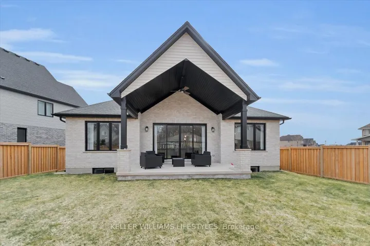 +"PublicRemarks": "This exceptional custom-built bungalow showcases approximately 4,000 sq ft of refined living space, offering 9' ceilings, 3+1 bedrooms, and 3 full bathrooms. Designed with elegance and functionality in mind, the main level features a grand foyer leading to a sophisticated gourmet kitchen with fine cabinetry, quartz countertops, a gas cooktop with griddle, built-in wall oven and microwave, and a spacious walk-in pantry. The open-concept living and dining area is ideal for upscale entertaining, highlighted by a striking gas fireplace. The primary suite serves as a private retreat, complete with a spa-inspired 5-piece ensuite featuring a freestanding soaker tub, walk-in glass shower, double vanity, and a separate enclosed water closet for added privacy, while two additional well-appointed bedrooms share a stylish 3-piece bathroom with a walk-in glass shower. A convenient main-floor laundry room enhances everyday living. The fully finished lower level extends the living space with an expansive rec and family room enhanced by a built-in sound system-perfect for movie nights-along with a fourth bedroom, an elegant 3-piece bathroom, a den, and a dedicated exercise room, plus a large utility area, cold room, and abundant storage. Rich engineered hardwood flooring spans the main floor, complemented by premium waterproof laminate in the basement. Sliding doors open to a covered patio with a vaulted ceiling, overlooking a large fully fenced backyard complete with a sprinkler and security system. The double-car garage features automatic openers with integrated cameras, and smart-home technology allows control of select lighting, irrigation, garage doors, video doorbell, and exterior cameras directly from your cellphone. Located in the highly desirable Sunningdale Crossing neighbourhood, this home offers a seamless blend of luxury, comfort, and modern convenience."