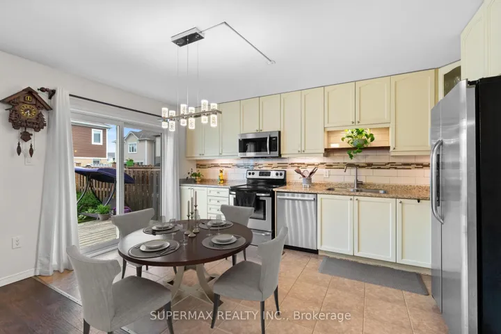 +"PublicRemarks": "Welcome home to this charming and well maintained Mattamy built home in a family friendly crescent in the Williamsburg Woods South neighbourhood.This home features 3 bedrooms, 3 bathrooms, an open concept main floor with an aesthetic kitchen, a cozy front porch, a double driveway, fully fenced with deck in backyard and greenery that offers an oasis impression.The main floor is open concept design that allows ample light providing a bright and lively living space throughout.The Kitchen cabinets were extended allowing for lots of storage and prep space, walk out directly from the dining area to the deck through he patio doors.Built-in microwave/hood, stainless steel appliances, subway tile backsplash all complement the space. Smoke-free, pet-free and carpet-free main floor and bedrooms provide a quality living environment.The upper level offers 3 generously sized Bedrooms including Primary with a 3-piece washroom and a walk-in closet. Second and third bedrooms are good sized as well with full washroom.Basement is unfinished enough space for one bedroom rec-room and a full washroom ,or for a studio apartment . New owners can take advantage of the Solar panels installed on the roof in future, a potential future investment!Walking distance to nature trails, schools and parks and state-of-the-art Kitchener Indoor Recreation Complex, an aquatic centre, four-turf field house, an elevated walking track is the newest addition to the neighbourhood expected to be ready by 2026. Other amenities include restaurants, hiking trails (Trillium Trail & Huron Nature area & RJ Schlegel Park within walking distance), close to 401 & Highway 7 & 8.Perfect for those looking for a cozy family Home ."
