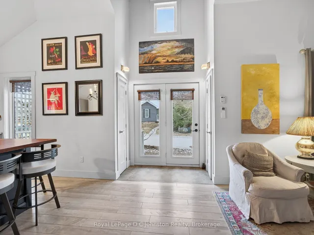 +"PublicRemarks": "Forget land-lease; here you own the home and the "dirt" beneath it. Welcome to this charming, beautifully updated detached home, perfectly suited for year-round living or a relaxing cottage retreat. Thoughtfully renovated over the years, it showcases distinctive character and quality finishes throughout. Start your mornings on the inviting covered verandah, enjoying coffee while overlooking manicured gardens. Inside, the heart of the home is the impressive great room with soaring ceilings creating a bright, airy atmosphere. The open-concept kitchen, dining, and living area is ideal for entertaining, highlighted by a striking floor-to-ceiling tiled gas fireplace. The chef-inspired kitchen features granite countertops and premium Porter & Charles and Liebherr appliances. The spacious primary bedroom offers a private retreat with a luxurious 4-piece ensuite featuring in-floor heating and French doors that open from the primary bedroom to the sunroom where you wake up to tranquil forest and ravine views. The peaceful four-season sunroom will quickly become a favourite space, surrounded by windows overlooking the ravine and creek while a cozy gas stove keeps it comfortable year-round. A second bedroom provides flexibility for guests or a home office. Outside, enjoy a stone patio with privacy fencing overlooking the ravine, plus a storage shed with hydro. Located in the charming lakeside community of Southampton, this home puts you close to Lake Huron sunsets, boutique shopping, dining, and scenic trails. It is just a 7-minute walk to South Street Beach with its sandy shoreline and views of Chantry Island and the historic lighthouse. In the summer, the nearby trolley offers easy access to downtown, making this the perfect blend of comfort, nature, and lifestyle in sought-after Saugeen Shores."