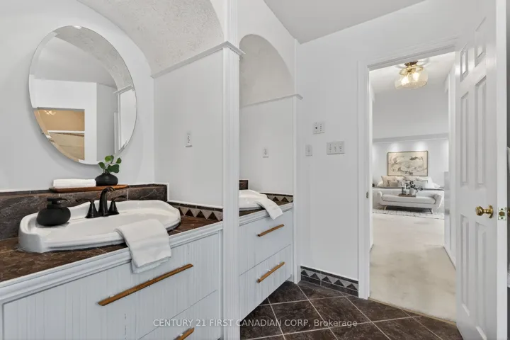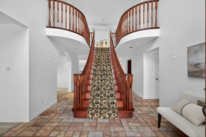 +"PublicRemarks": "Welcome to 8 Claire Court in the desirable community of Strathroy-an impressive executive 2-storey home perfectly positioned on a quiet court and backing onto beautiful green space. Offering approximately 3,000 sq ft of finished living space, this original owner home combines timeless design, generous room sizes and an exceptional setting ideal for family living. A grand entrance welcomes you into the classic centre hall design, creating an elegant and functional flow throughout the main floor. The heart of the home is the custom kitchen, thoughtfully designed with a hidden pantry and ample cabinetry, ideal for both everyday living and entertaining. The kitchen opens to a warm and inviting family room featuring a cozy fireplace and views of the private backyard and green space. Also on the main level is a dedicated office with custom built-ins and beautiful inlay flooring, providing the perfect work-from-home space. A convenient 2-piece bathroom and a practical main floor laundry room complete this level. The attached 2 car garage and concrete driveway provide excellent parking and convenience. Upstairs you will find 4 spacious bedrooms designed with family comfort in mind. The impressive primary suite offers exceptional space along with a luxurious 5-piece ensuite featuring a glass shower and two matching walk-in closets. 3 additional generously sized bedrooms and a four-piece main bathroom complete the upper level. The lower level offers excellent functionality with two separate staircases providing access, along with 2 finished rooms and cold room, offering great potential for additional finished space if desired. Outside, a beautiful rear deck overlooks the stunning treed green space providing privacy and a peaceful natural backdrop rarely found in town. Located on municipal water and sewer with R-1 zoning and 2025 property taxes of $5,891, this exceptional court location offers space, privacy and the ideal setting for a growing family."