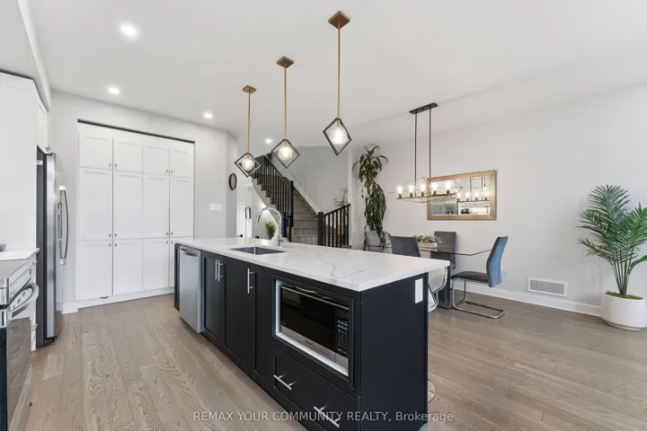+"PublicRemarks": "This beautifully upgraded end unit townhome offers a seamless blend of elegance, style, and everyday functionality. The modern open concept layout showcases a designer kitchen with ample cabinetry, a stunning island with quartz countertops, and high-end appliances. The dining space flows effortlessly into the living area, where patio doors lead to a spacious backyard with PVC fencing, ideal for outdoor gatherings. The sun-filled living room features soaring ceilings and expansive windows, creating a warm and inviting atmosphere. Upstairs, the spacious primary suite includes a large walk-in closet and a luxurious ensuite complete with a deep soaker tub and a glass-enclosed shower. Two additional generously sized bedrooms offer ample space for family or guests, while the main bathroom features quartz countertops and stylish finishes. A convenient laundry room completes the upper level. The finished lower level adds even more living space, with a versatile rec room featuring a gas fireplace, a full bathroom, and ample storage, making it ideal for a home gym, playroom, or entertainment space. Located close to excellent schools, parks, and public transit, this home offers the perfect balance of comfort, convenience, and modern living. An absolute must-see!"