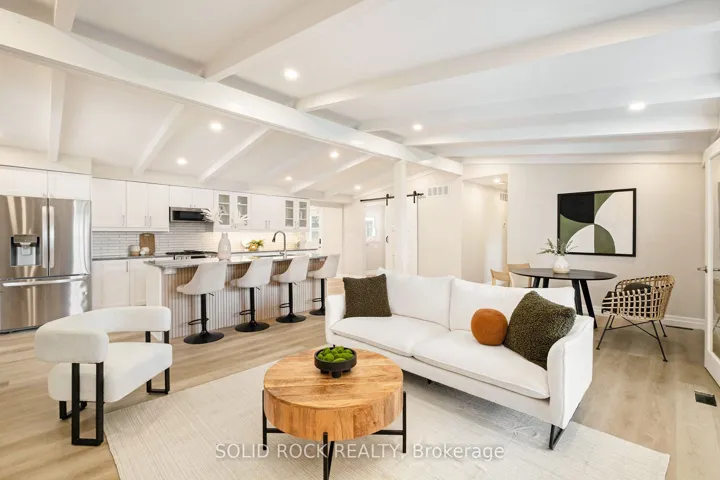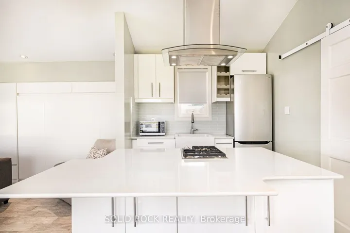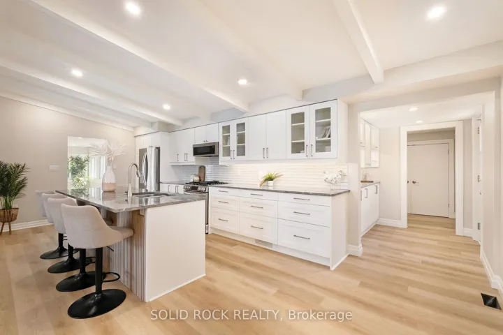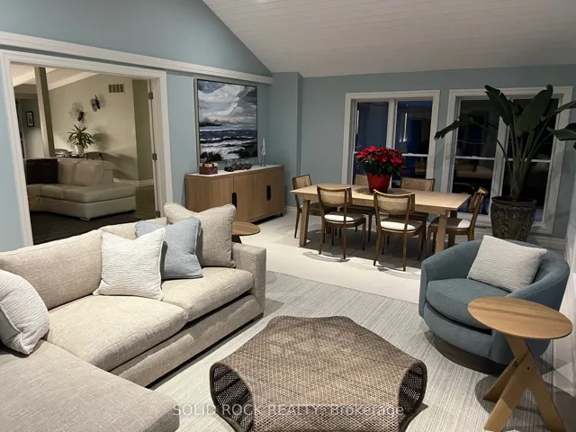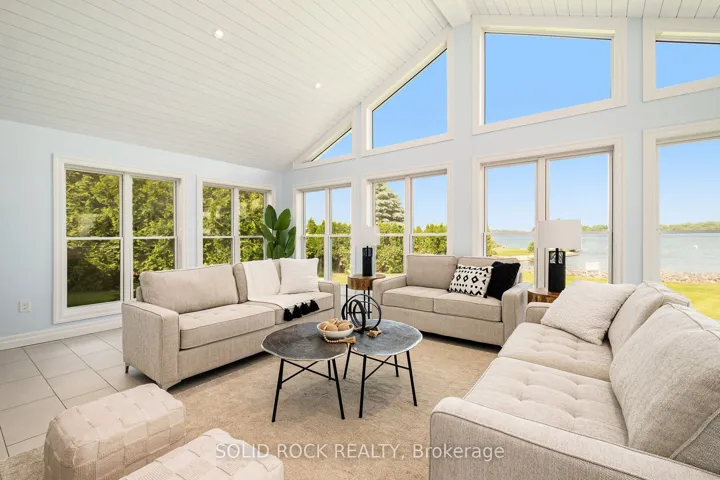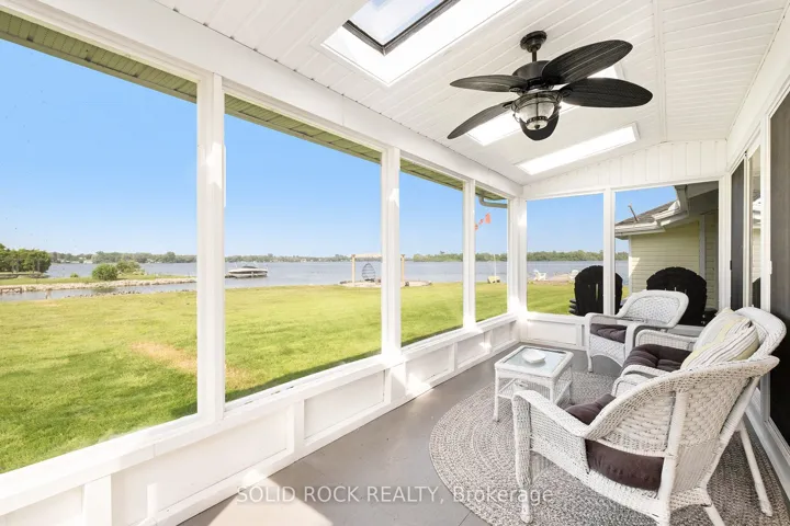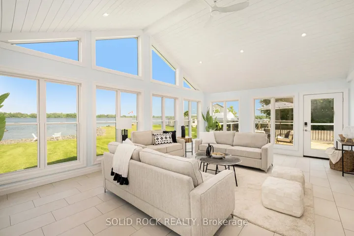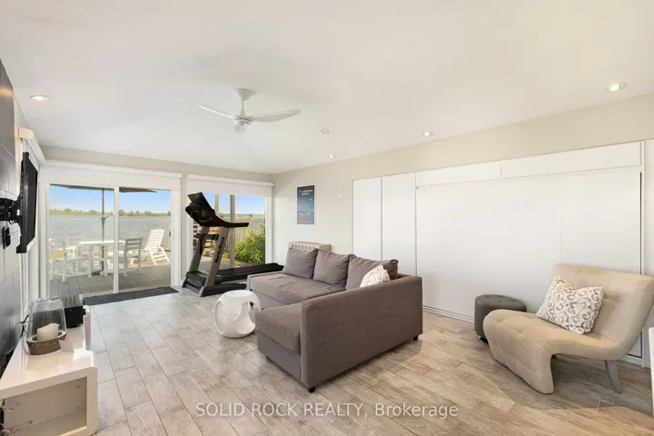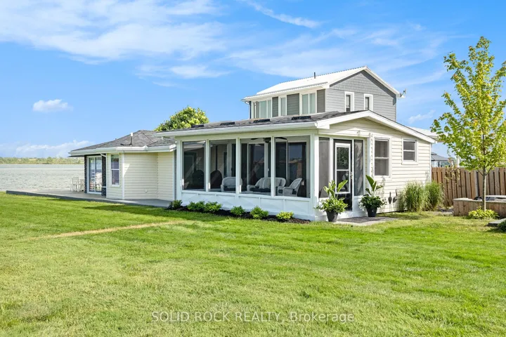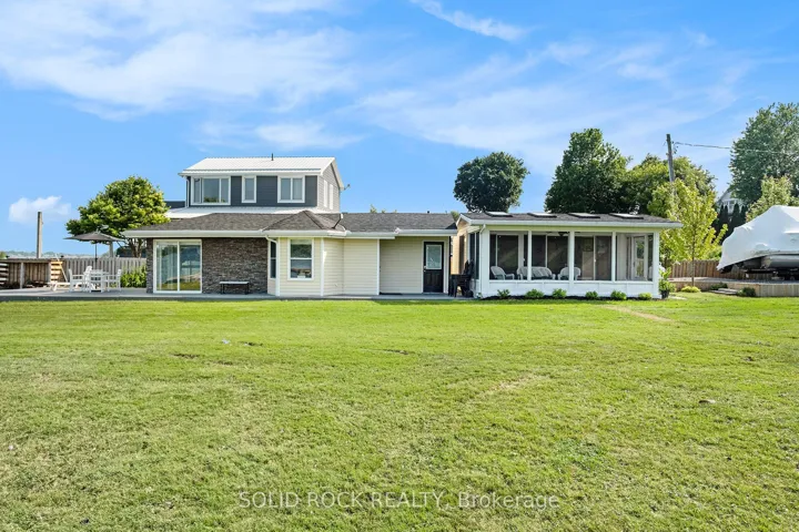 +"PublicRemarks": "Step into refined waterfront living with this completely renovated 3-bedroom bungalow, blending cozy cottage charm with modern luxury. Nestled on a scenic waterfront of the St Lawrence River, this home offers an open-concept layout designed to make the most of its stunning views and natural light. The heart of the home is the show-stopping kitchen, featuring granite/marble countertops, a large island with a double sink, gleaming stainless steel appliances (2025) including a gas stove and classic white tile backsplash. Adjacent to the kitchen, a spacious galley with matching finishes and an oversized walk-in pantry offers lots of storage. Beamed ceilings run throughout the home, adding warmth and character. The inviting living room, centered around a gas fireplace with built-in shelving and wood accents, flows seamlessly into a striking A-frame sunroom with panoramic water views. Ceramic floors, soaring windows, and direct access to a wooden deck create the perfect space to unwind or entertain. Enjoy your morning coffee or an evening soak under the stars with a hot tub and gazebo just off the back deck. The primary bedroom overlooks the water and includes two generous closets with custom built-ins. A second bedroom enjoys the convenience of its own private powder room, while the main bathroom features elegant ceramic flooring and a rainfall shower. Ideal for hosting or generating income, two stylish bunkies sit close to the water. The larger bunkie boasts its own deck facing the lake, a partial kitchen with quartz counters, country-style sink, stainless steel fridge and vent hood, living space with Murphy bed, and a full 3-piece bath. The smaller bunkie includes a screened-in porch and its own powder room. Whether you're entertaining, relaxing, or hosting guests, every detail has been considered for easy, elegant living by the water. Approx 1 hr from Ottawa, 3 hrs from Toronto and minutes to hwy 401 & 416."