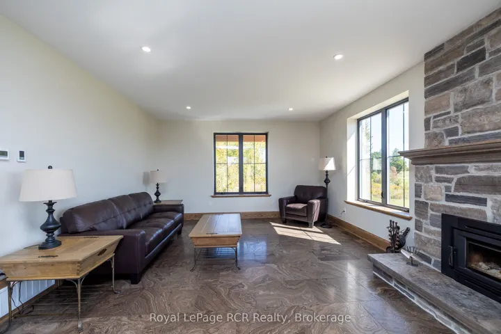 +"PublicRemarks": "Impressive custom built 2 storey stone home on 65 acres. An abundance of natural light flows through the oversized windows and doors with country views from every room. While the covered front porch leads to the foyer, the mudroom entrance is 11x18 with lots of storage, laundry area and powder room. As you enter the living areas, the quality of craftsmanship is evident in the 8' solid oak doors, trim and staircase. The spacious kitchen features lots of cabinetry with a great working layout, an oversized island with 2nd sink and commercial grade appliances. The dining area is open to the living room where you'll find a wood burning fireplace. On the second level there is a large landing suitable for an office or sitting area (12x17). In addition to the full bathroom and 2 spacious bedrooms you will find a luxury suite that includes a spa-like ensuite and walk-in closet. The finished lower level is complete with a family room, office/den, gym/bedroom, 3 piece bath and cold storage room. Built in 2024, this custom home features the highest quality in construction, finishes and comfort. ICF construction from the footings to the roof, in-floor heat in basement, forced air propane and a/c, extensive built-ins in closets, and so much more. Lots to explore on the land including 2 ponds. This exceptional property is sure to impress."