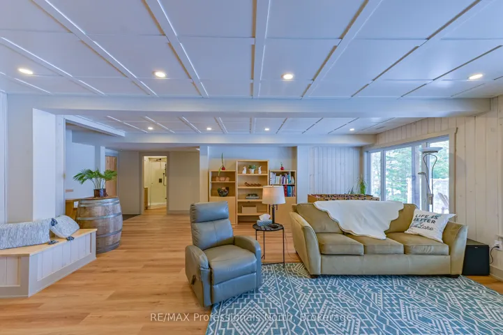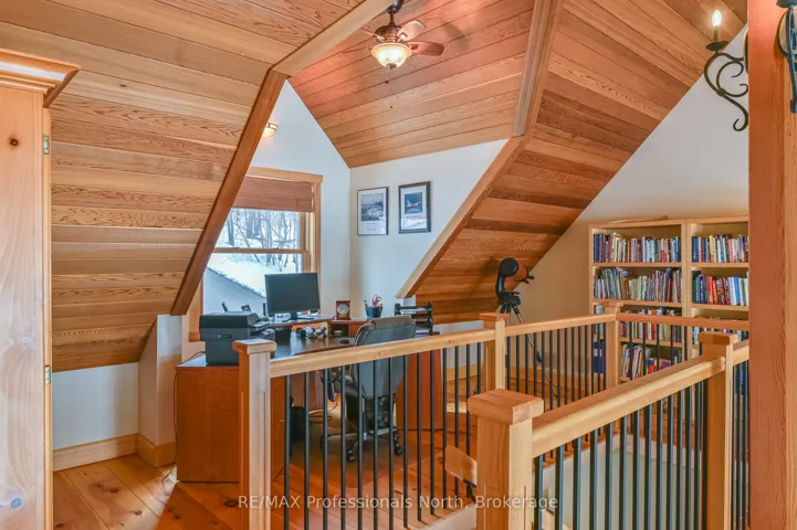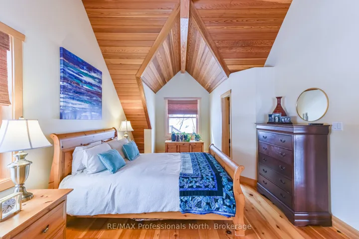 +"PublicRemarks": "Experience the tranquility of a custom-built cottage retreat, nestled among mature trees for ultimate privacy. Wake up to breathtaking eastern sunrises over Gull Lake; with 110' of pristine shoreline and 0.98 acres of open space leading to the shimmering water. Inside, enjoy elegant BC Spruce Timber, Clear Western Red wood Ceilings, Eastern White Pine wide plank floors, soaring 24' Cathedral Ceiling, Custom 16' Random dry stack Muskoka Stone fireplace, a Gourmet Kitchen with Quartz island, Wolf stove, and custom Baltic Birch cabinetry-perfect for hosting family and friends. Primary Bedroom with a walk out to the deck. Spa Style Ensuite with heated slate floors, feature stone wall, soaker claw foot tub. The four-season sunroom, Dining Area and main floor living offer comfort in every season. The Lower Level offers a Custom Built Wine Cellar, spacious Family Room, Gym, Three Piece Bathroom with Laundry hook up and the Foyer leads to the lake side yard and steps to Gull Lake. The Upper Level showcases the Post and Beam Douglas Fir along with the finishings and Lake View from the Den. Three more bedrooms, one with a loft and a Three Piece Bathroom. This home or cottage combines timeless elegance with modern convenience. Newer Windows frame stunning lake views, inviting you to relax and unwind in your private lakeside haven. The generous lakeside Cedar Deck invites dining, lounging and entry to various parts of the home. This shallow bay on Gull Lake offers family friendly entry into the lake, 7' depth off the 16' x 20' dock, rock shelf shoreline and a storage rack in the bay. The Fire Pit includes an African Fire Pot and Custom-made Benches for gathering around. 30' x 30' heated 2 1/2 car garage is plumbed for a workshop. Full house generator for peace of mind. This exclusive Custom Build was constructed with Quality Finishings, Quality Details and for Relaxation and Enjoyment."